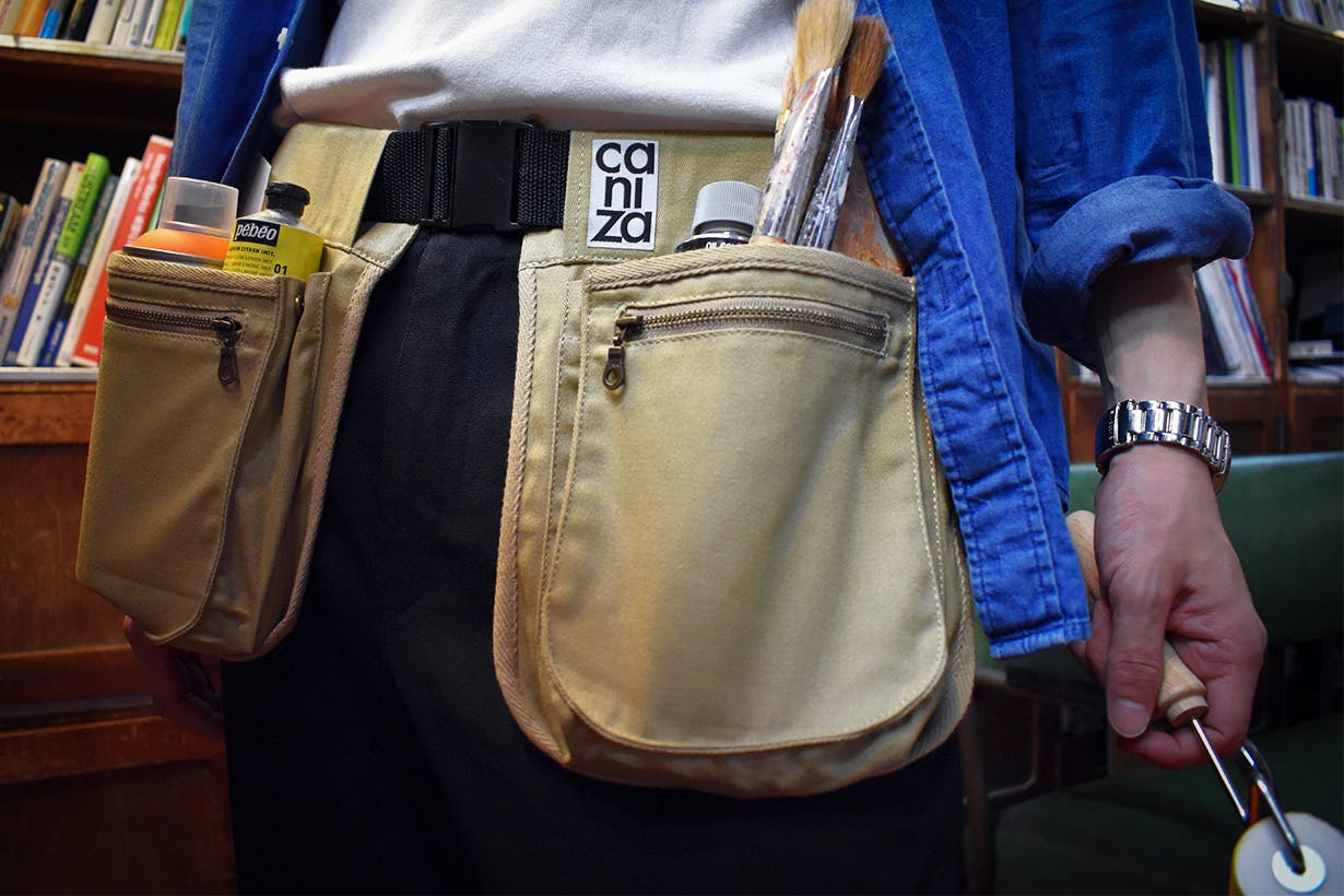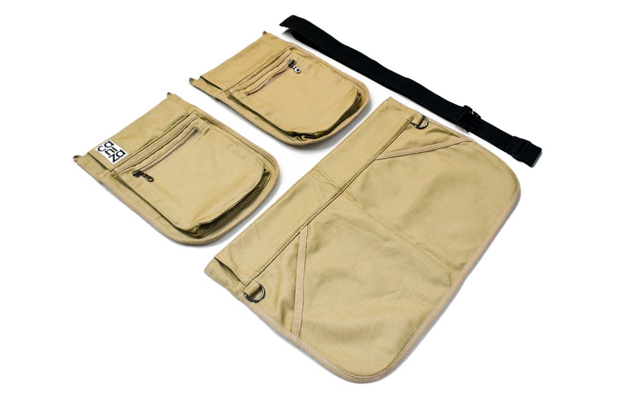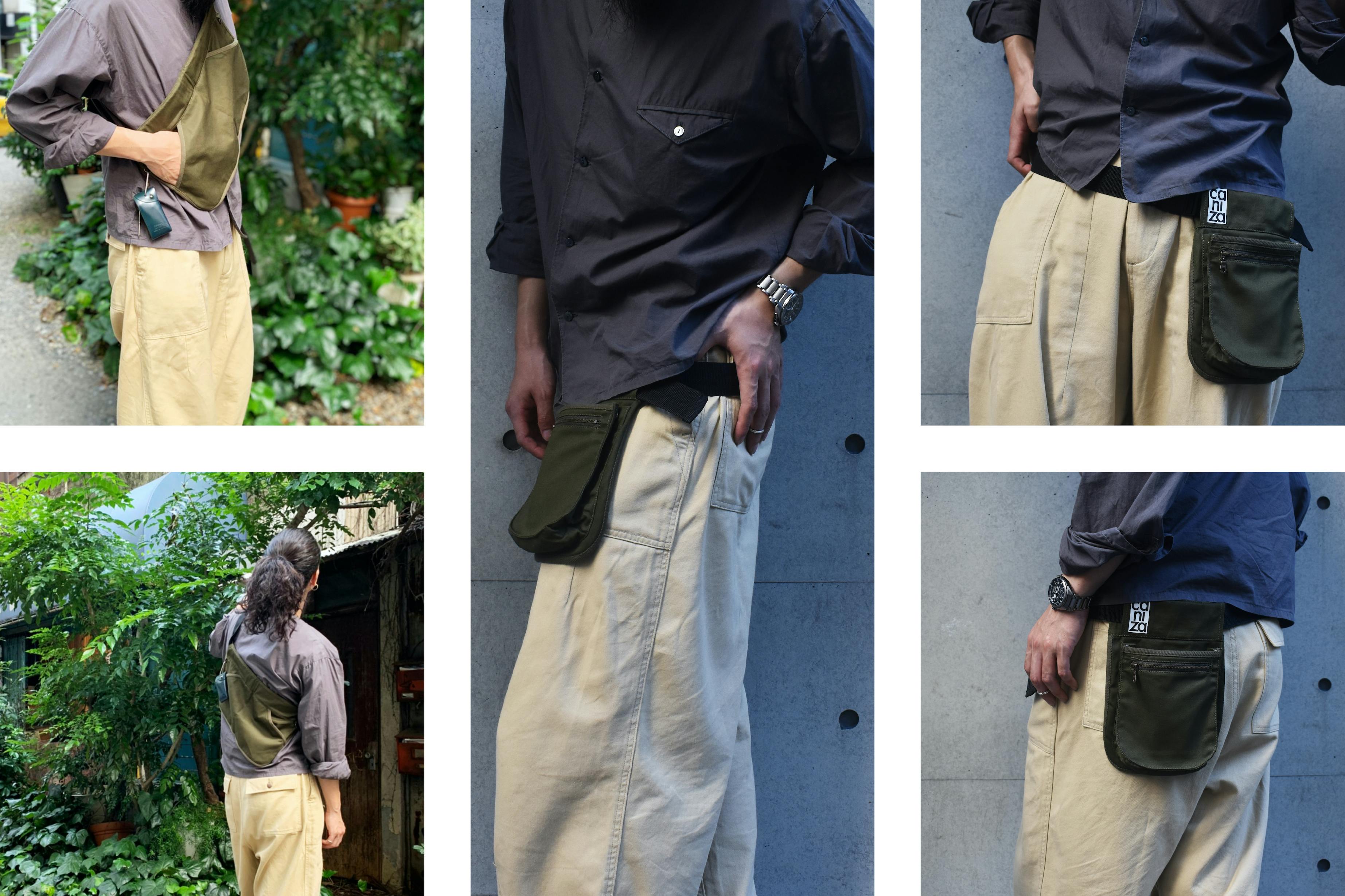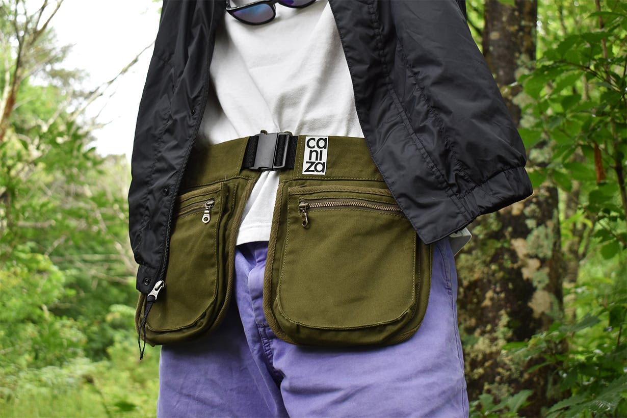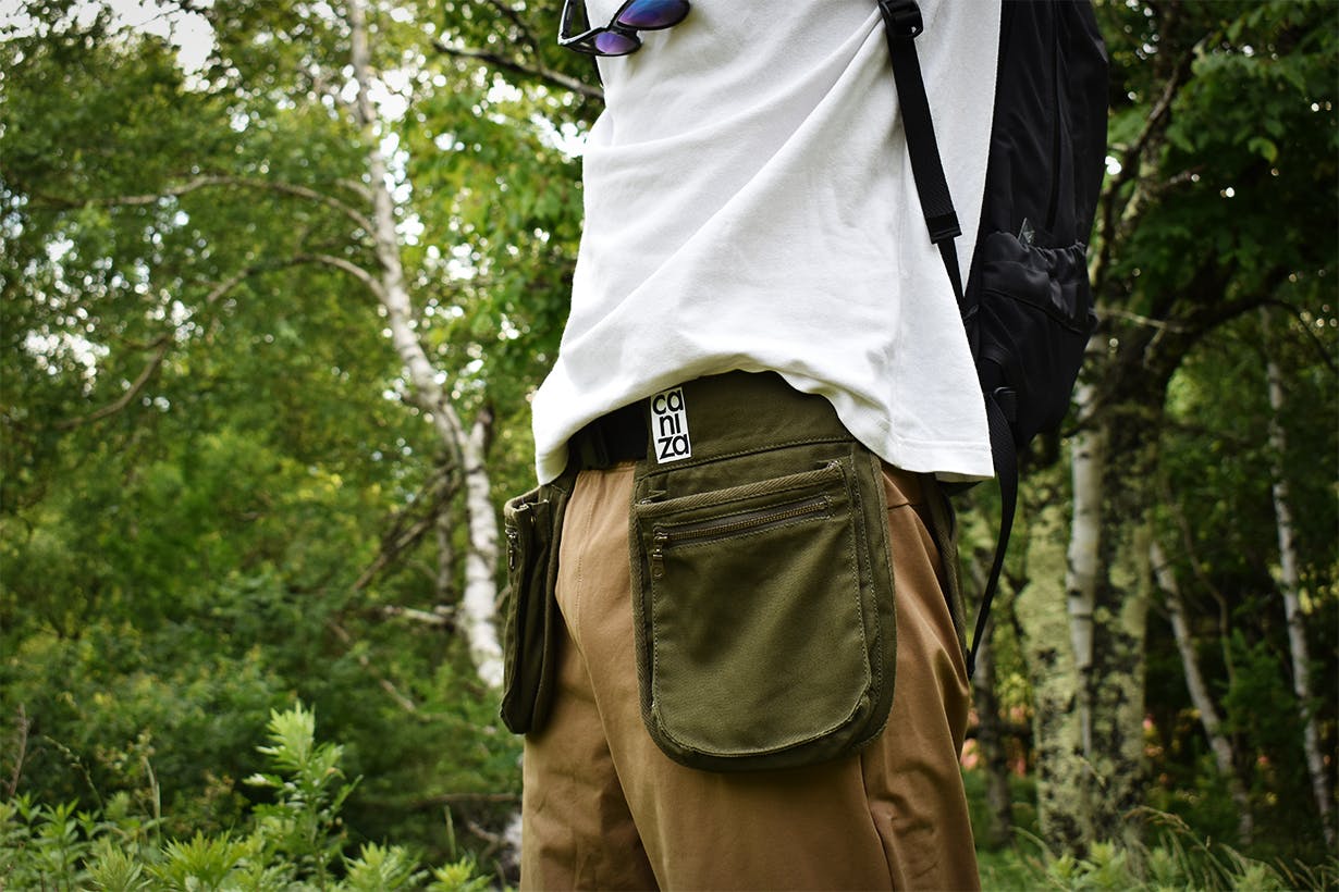 元は射撃用として使用されていたハンティングエプロンをリデザインし、日常的に使用するスマートフォンや財布などを収納するのに便利なウェアラブルマルチポケットに仕上げました。