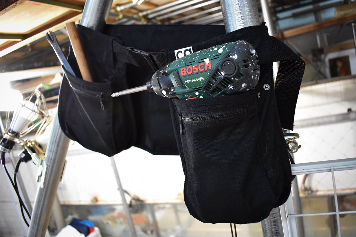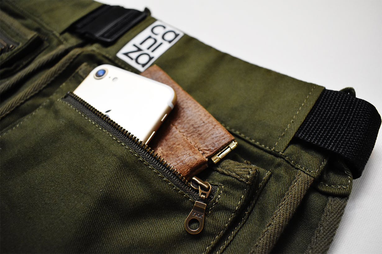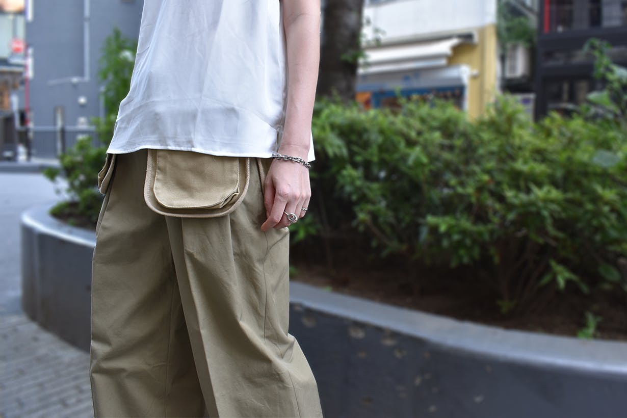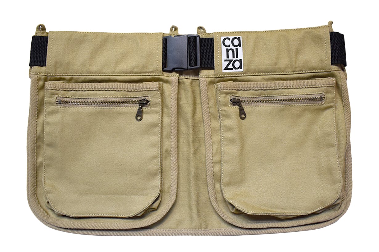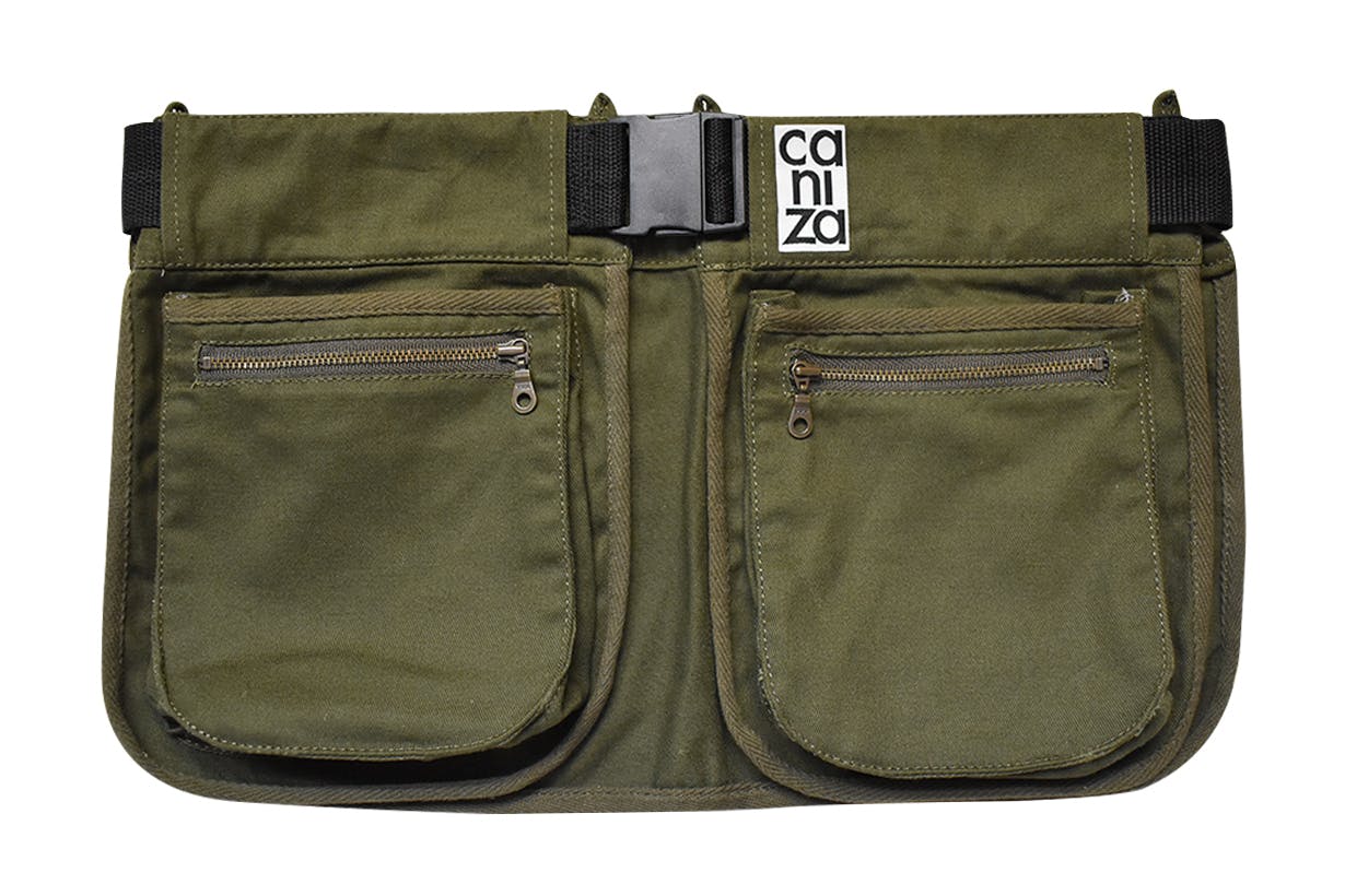 元は射撃用として使用されていたハンティングエプロンをリデザインし、日常的に使用するスマートフォンや財布などを収納するのに便利なウェアラブルマルチポケットに仕上げました。