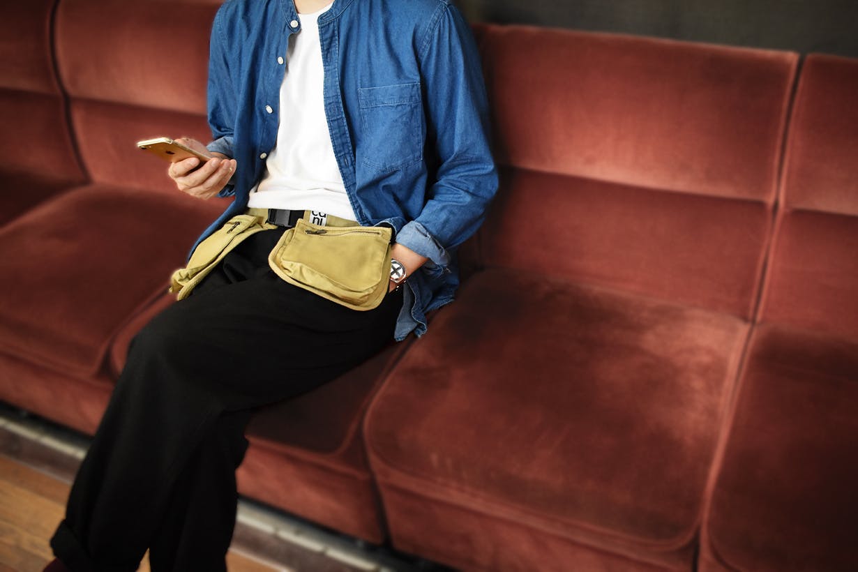 厚みがないため従来のウエストバッグのようにシルエットを崩してしまうこともありません。