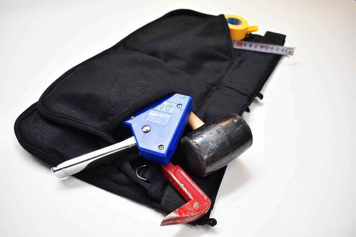 樹の幹やフェンスなどに装着することで即席の荷物入れや工具入れとして使用するのも便利です。