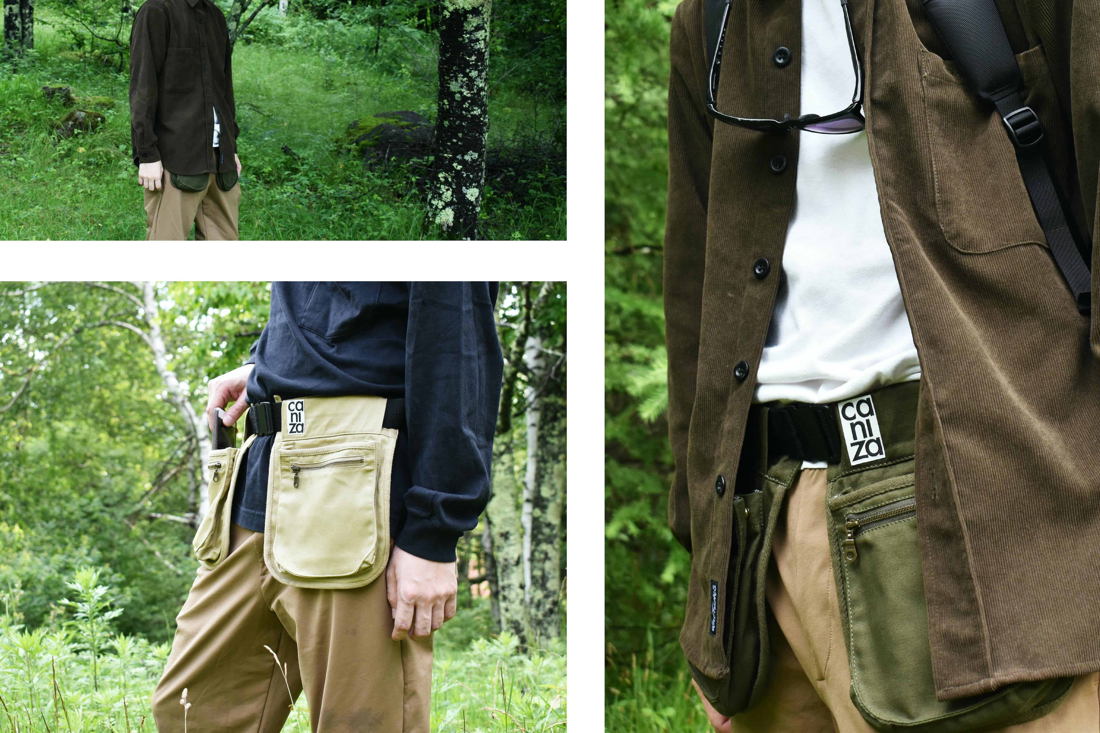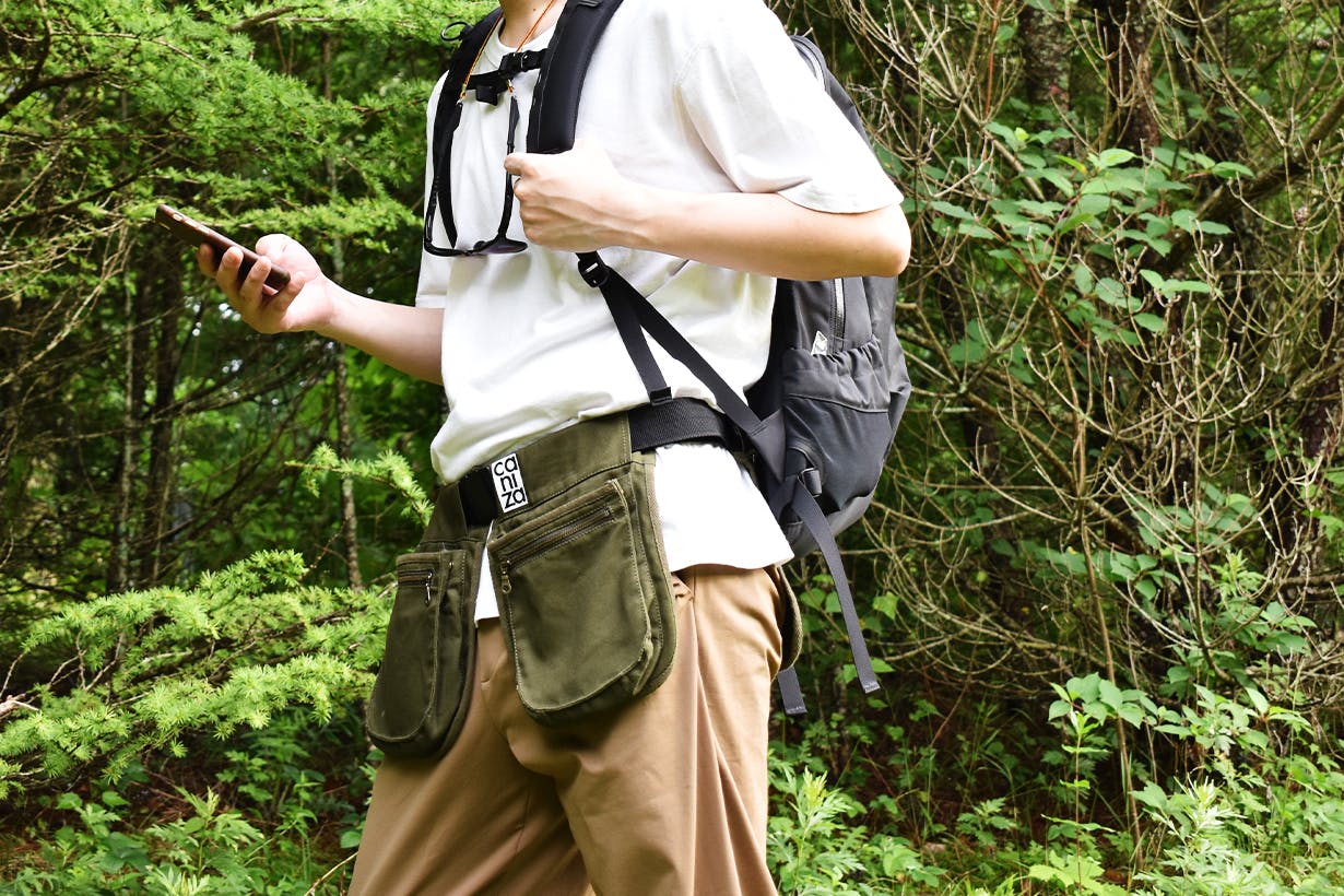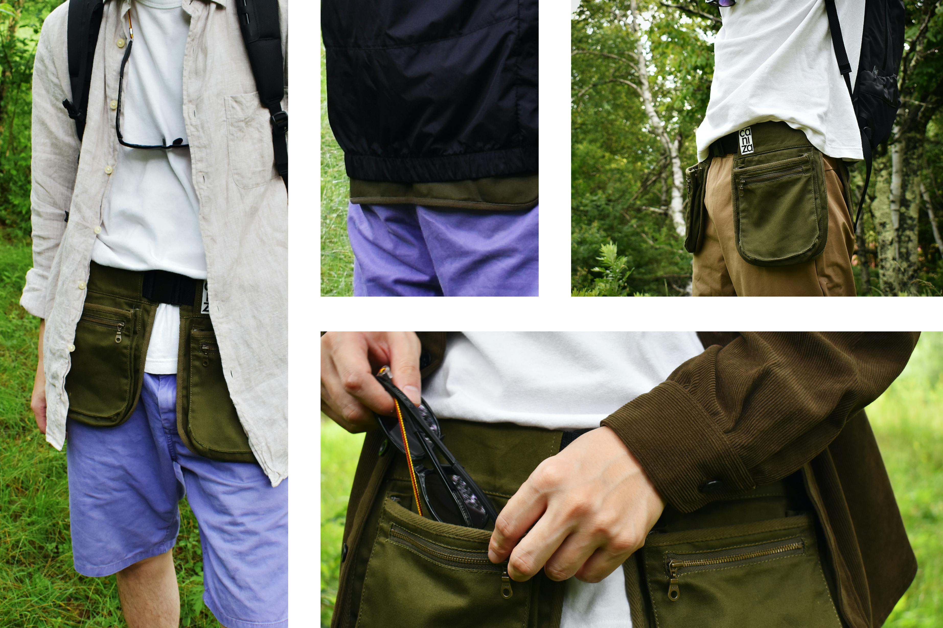必要最低限のモノをポケットに入れ、腰につけるこのスタイルにより従来のバッグやリュックでは得られなかった快適さを実現しました。