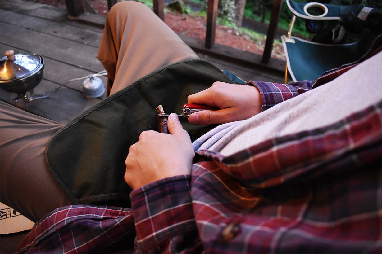 バックポケットがお尻をカバーしているため野外でもズボンを汚さず座ることができます。