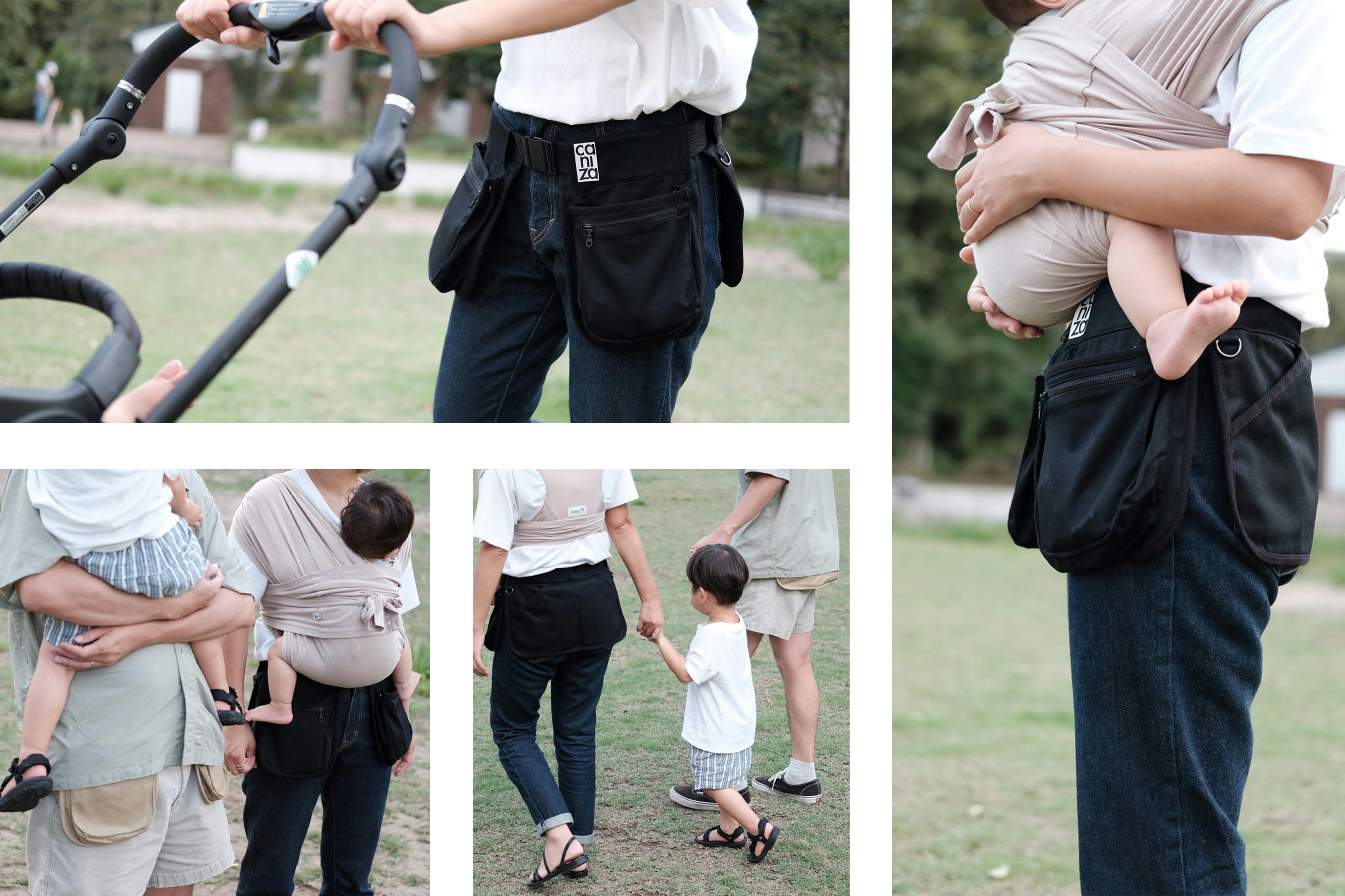 抱っこ紐と併用できるのでお子様を抱えながらも即座に荷物を取り出せ、ベビーカーの奥から荷物を探すために立ち止まる必要もありません。