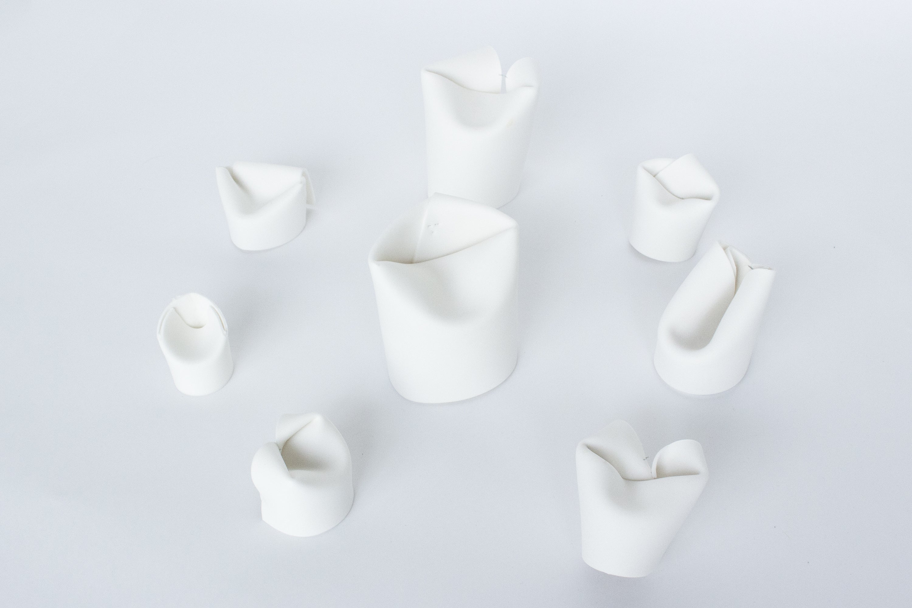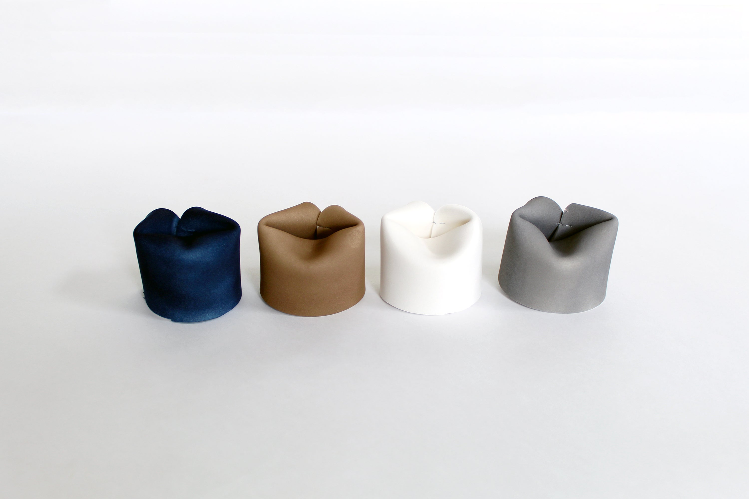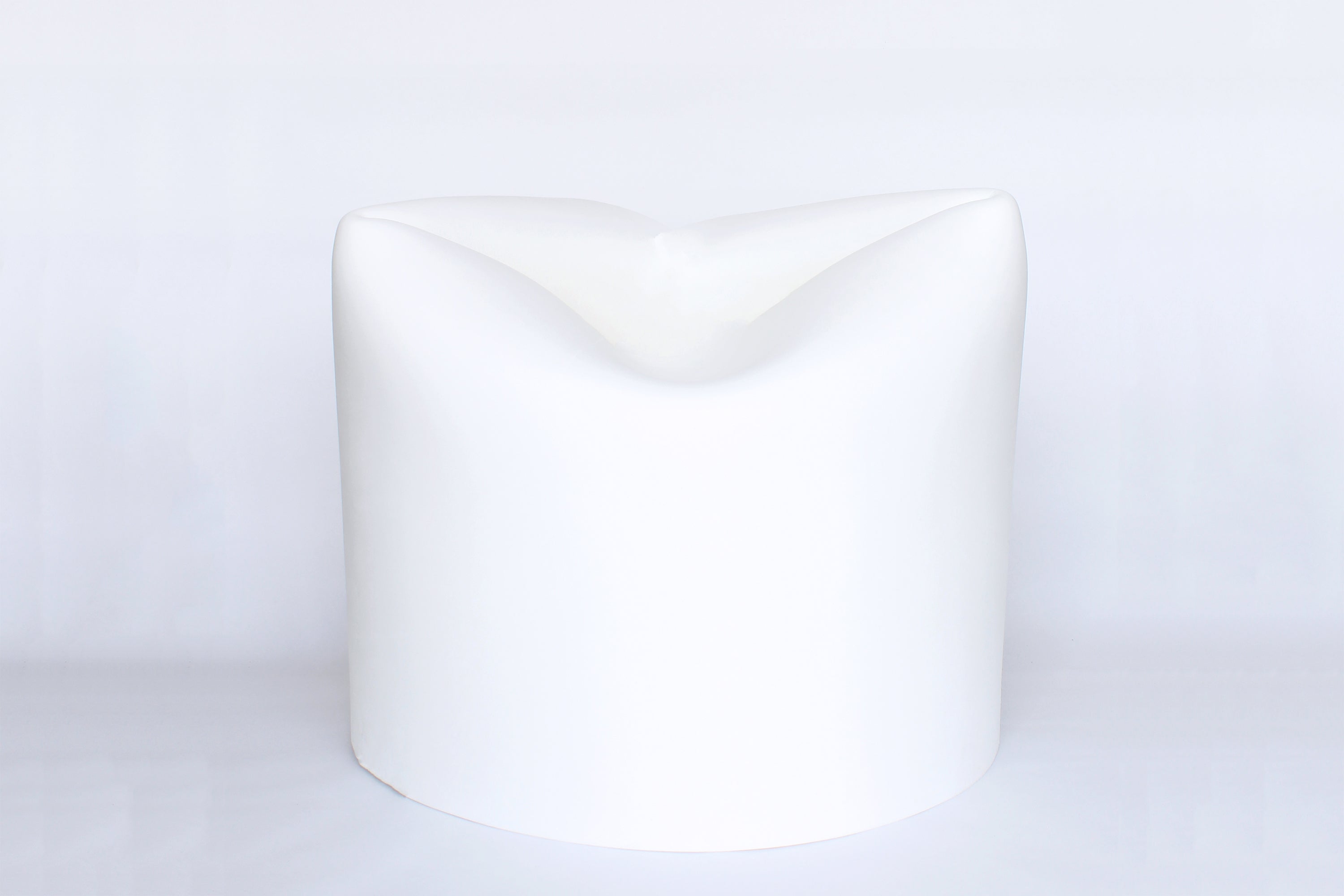 袖から着想を得て、全く新しいイスをデザイン・制作しました。シート状の発泡体だけで人を支える不思議なイスです。柔らかな造形としっとりした座り心地が特徴です。