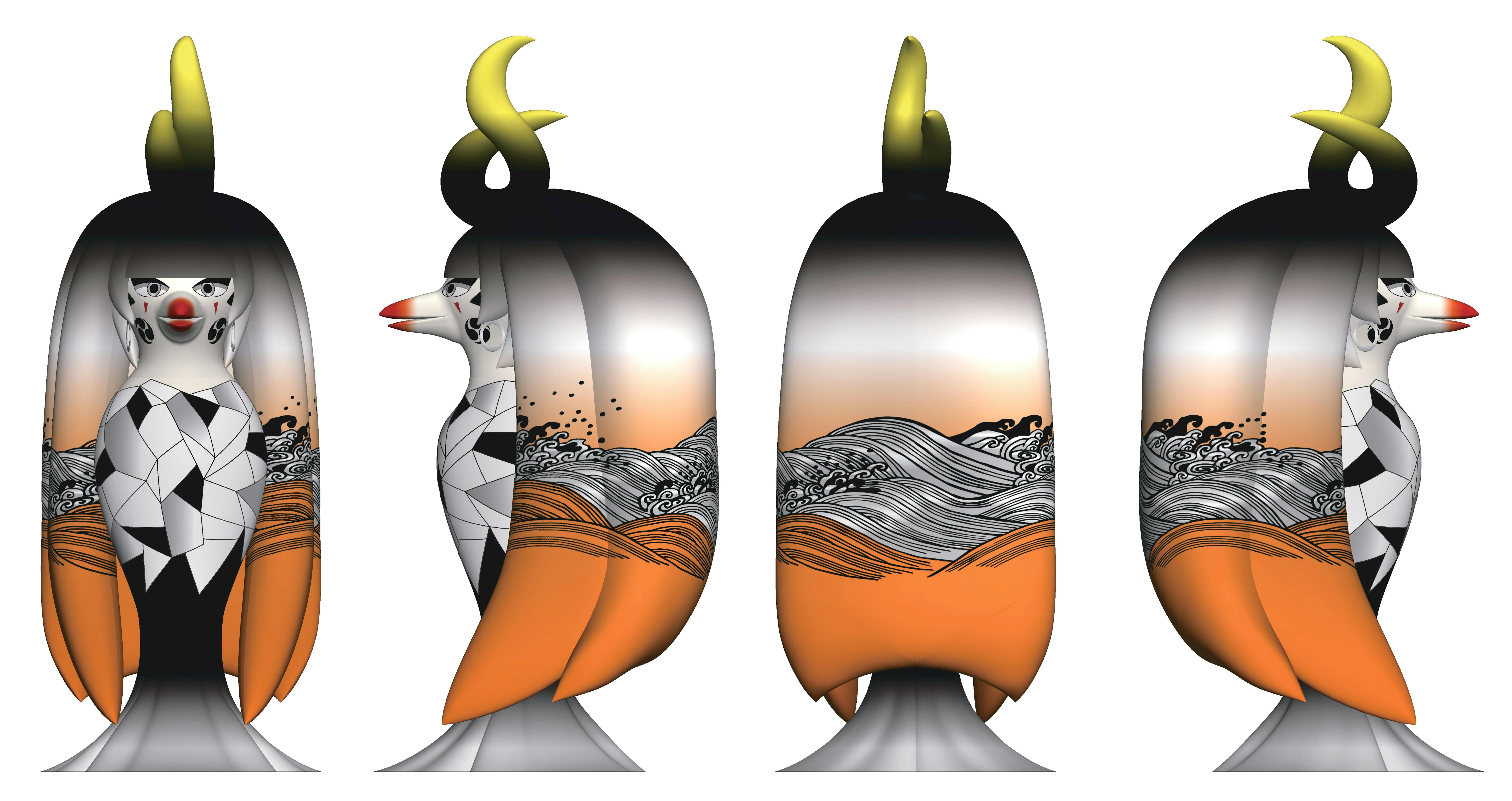 「大阪・中之島の光の饗宴。ここに、大きなアマビエ・バルーンをデザインしました。世界中の皆さん苦しんでいる、そういった時に、今、メッセージとして、妖怪が現れます。妖怪は、ある意味で疫病退散ってことなんですよね。そういうことで、これを見る時に、ああ、これでもうコロナは収束するんだ、という大きなメッセージになると思います。これを見て、大阪も日本も、世界中も、コロナ収束になれば素晴らしいと思います」