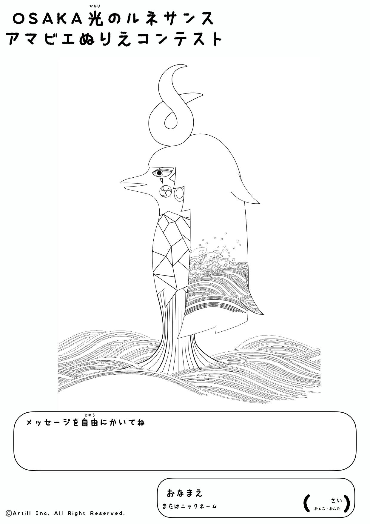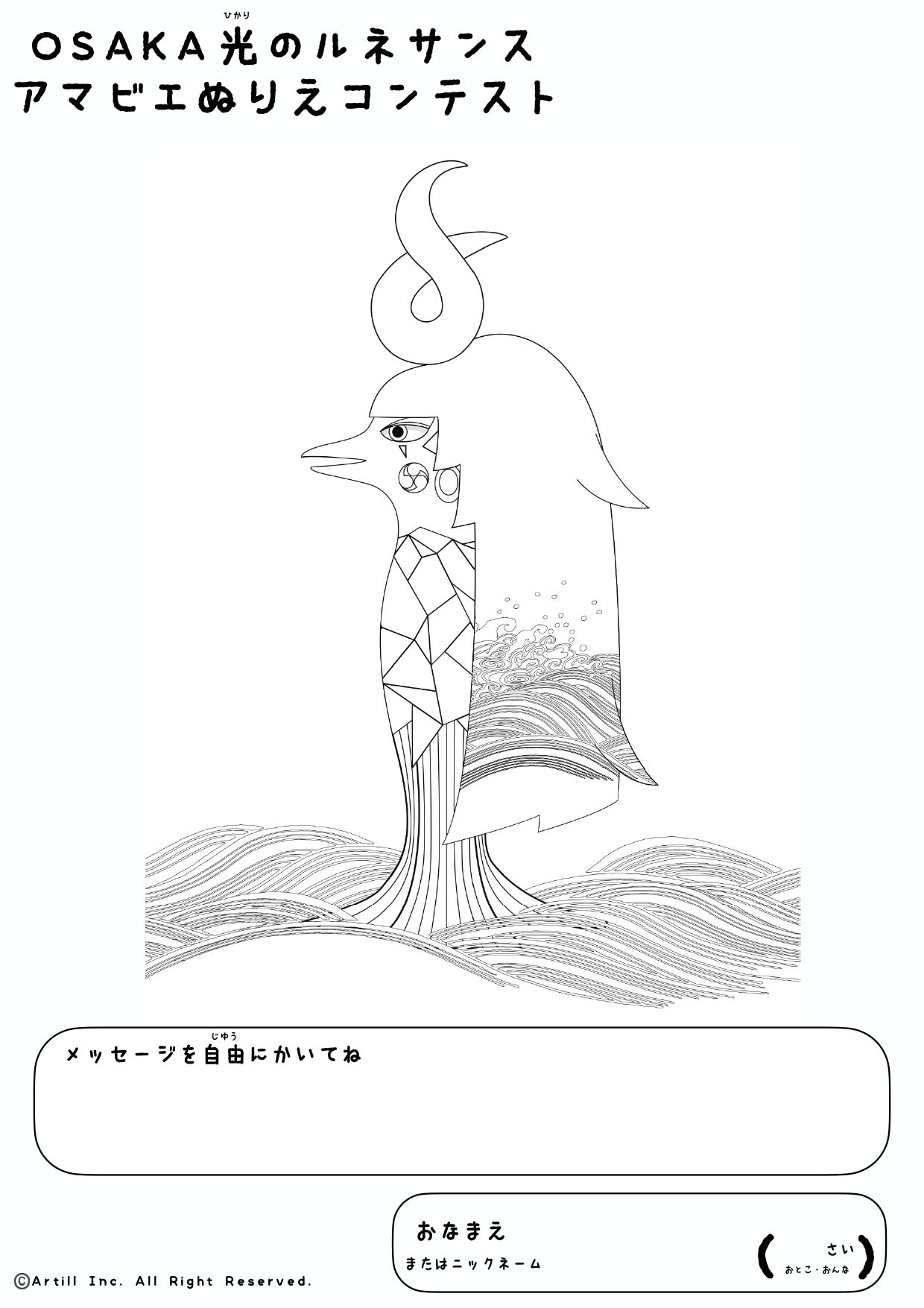 *ハッシュタグ: 「#OSAKA 光のルネサンスアマビエぬりえコンテスト」