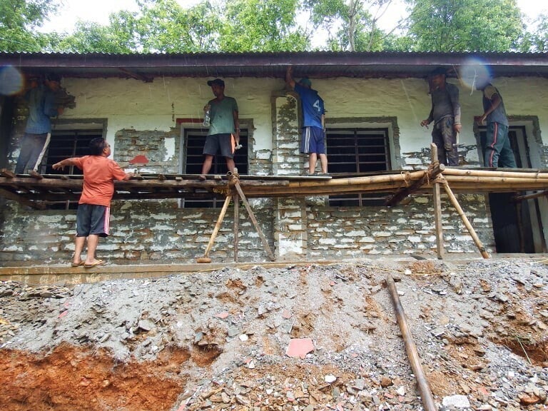 2015年には、ネパール⼤地震の際には、 かろうじて倒壊を免れましたが、決して頑丈な建物ではないため、次にいつ来るかわからない地震にも備 えた校舎にしなければなりません。