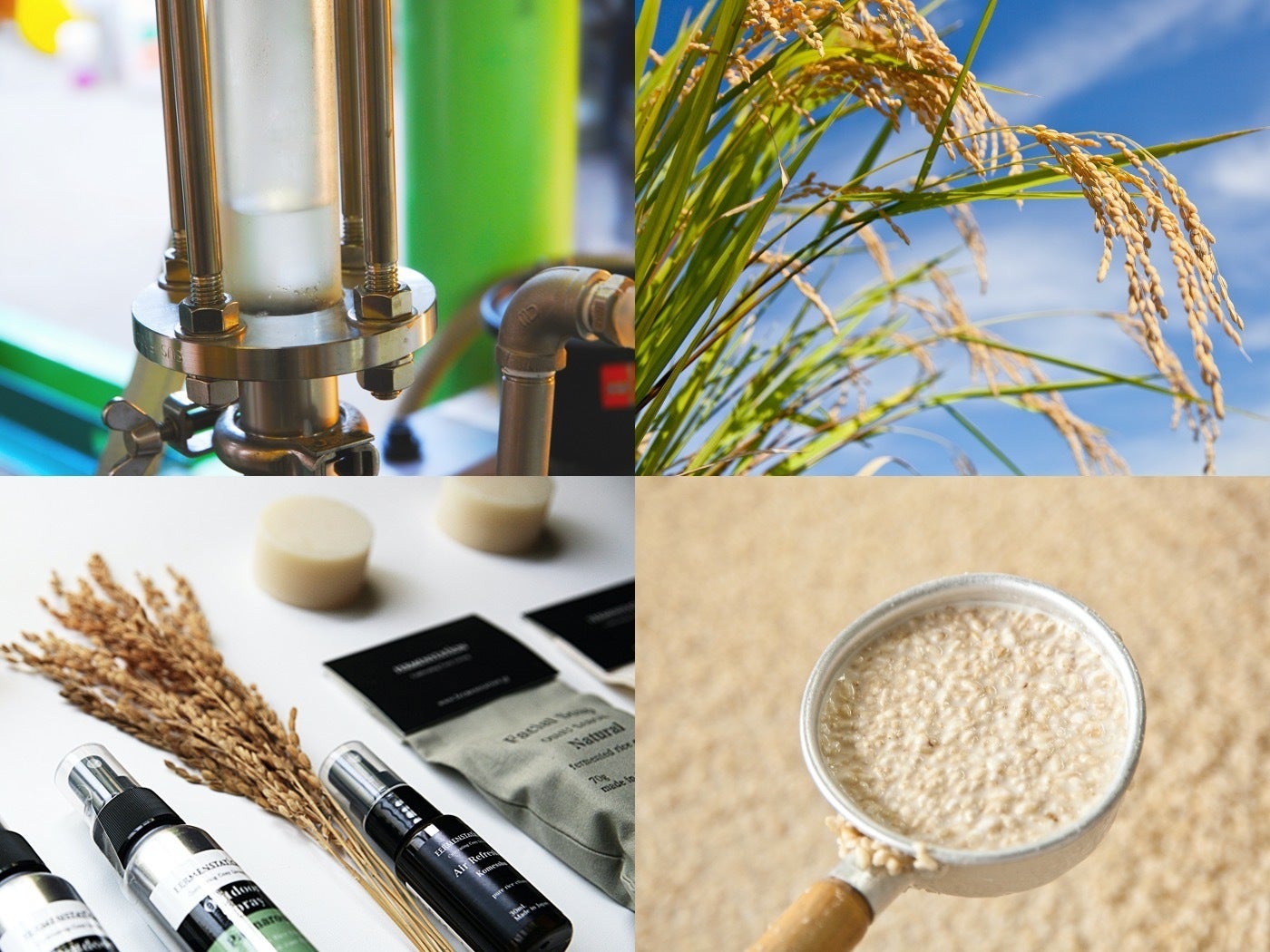 今回、プロダクト開発をしてくださったのは、岩手県奥州市にある「株式会社ファーメンステーション」。奥州市内にある休耕田で栽培された有機JASオーガニック米を発酵・蒸留してエタノール(アルコール)を製造している会社です。残った発酵粕も化粧品の原材料に使用するほか、鶏や牛の餌に活用し、さらにその鶏糞や牛糞は畑や田んぼの肥料にするなど、サステナブルな取り組みを実践しています。