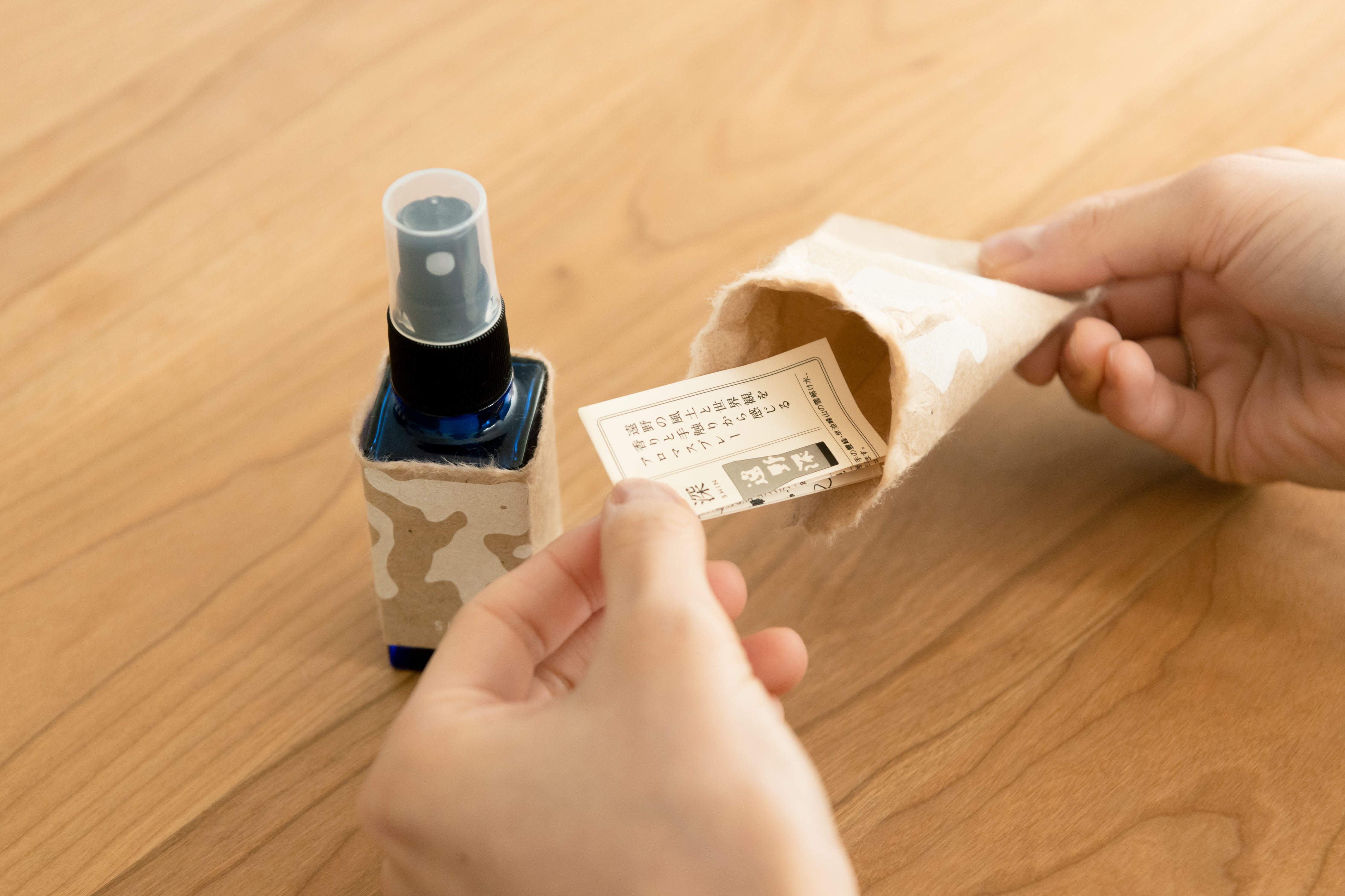 嗅覚は、五感の中でも特に強く脳に訴えかける感覚といわれています。離れていても岩手・遠野の土地を思い出し、近くに感じることができるよう、遠野の世界観を感じられるアロマスプレーを作りました。