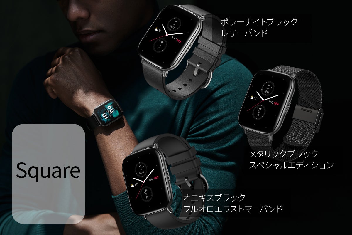 3Dピュアブラックの3Dガラスと磨きぬかれたステンレス スチールで構成された「Zepp E」は、ミニマルでありながらスタイリッシュで、人目を引くスマートウォッチです。