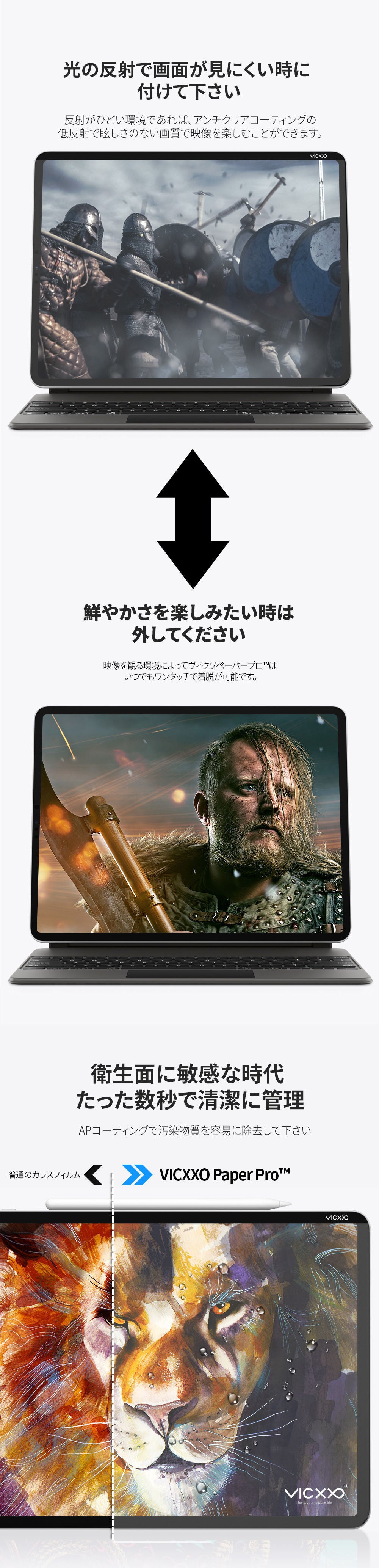 VICXXO(ヴィクソ)の独自の特許技術で、これまでのペーパーライクフィルムの問題を解消し、新たに開発したiPad Pro用「Paper PRO」をご紹介します。