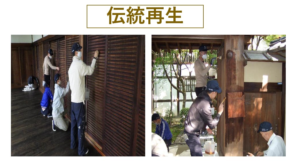 ・現代の材料・工法を使用して日本の伝統建築を修復する。経験の浅い若手職人にとってかけがえのない学びの機会であり、伝統建築の利用者にとっても明るい未来への一歩となります。