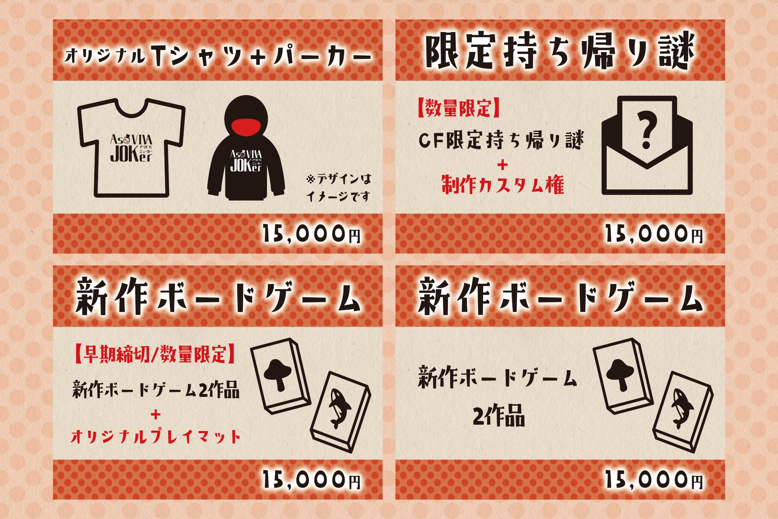 あなたのアイデアやJOKER PROJECTに作って欲しい謎を指定して、実際に公演を作り上げるリターンです。