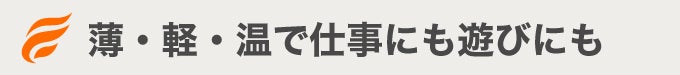 薄いのに温かい「スピードヒート」は、ベスト型だから腕の動きを妨げないため準備や片付けといった作業時にも野暮ったさはありません。