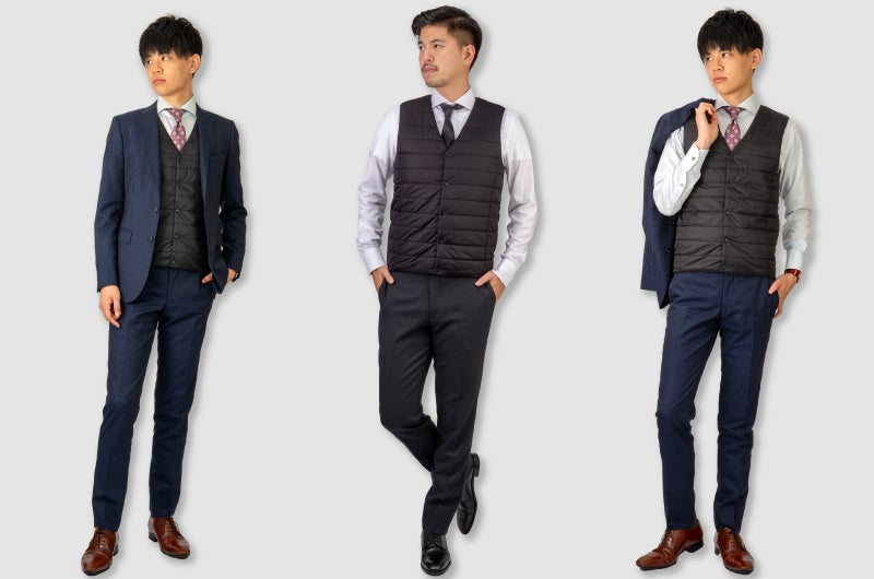 「スピードヒート」はスーツと合わせても着ぶくれせず、スタイリッシュなシルエットを維持しながら発熱による高い保温性能を実現しています。