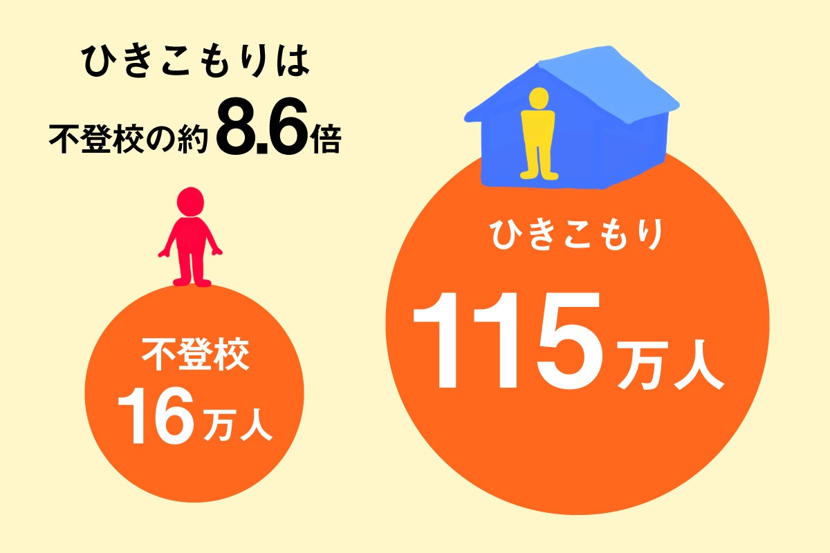 一方、15歳以上の人々で学校や職場に通わず家を中心に暮らしている、いわゆる「ひきこもり」の人は、政府の統計でも115万人以上おり、不登校の人数をはるかに上回ります。