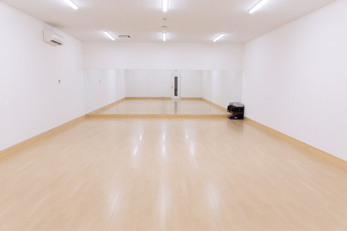 グランドピアノありの防音スタジオ。音楽関連の練習やリハーサル、こそっと練習などに。木目調が美しいフロアは広々70㎡以上でミニコンサートやライブなども可能な施設です。