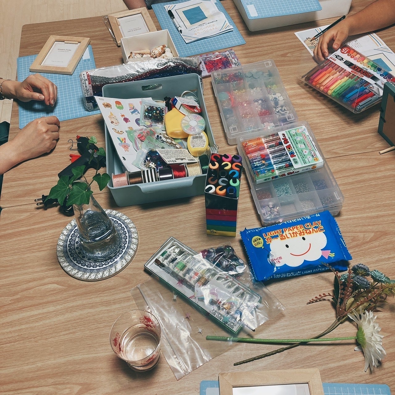 この日はフォトフレームのデコーレーションをしてます。