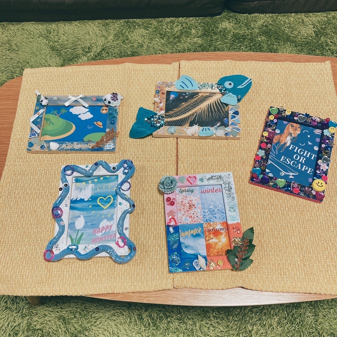 できあがった個性豊かなフォトフレーム。