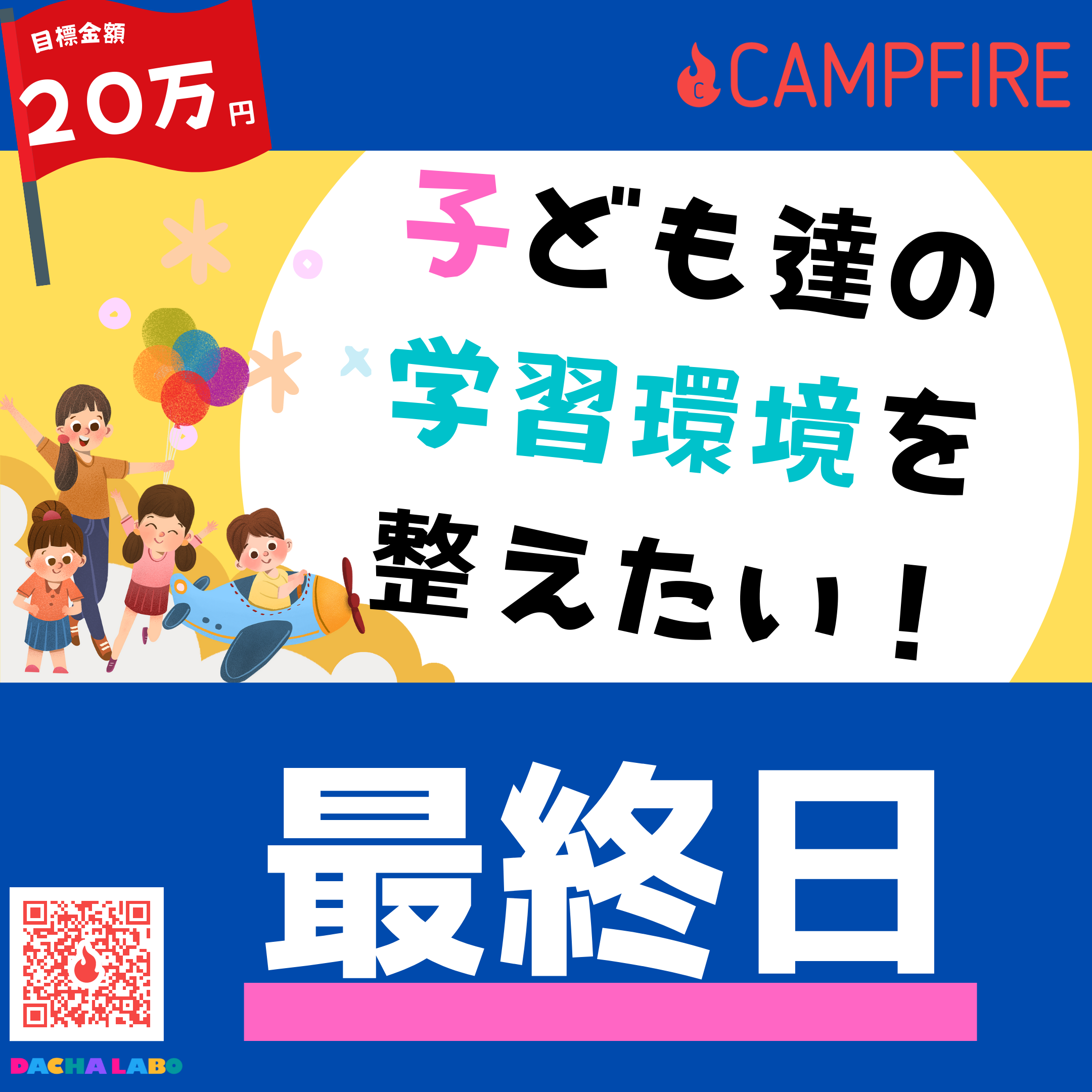 皆さまのご支援のおかげで、だーちゃらぼは子どもたちの支援に全力を注ぐことができています。子どもたちは、このどんよりと不安が漂うコロナ禍においても、自分の将来の可能性を信じて、懸命に学習に励んでいます。そんな健気な背中を後押ししたいと思い、今回のプロジェクトを立ち上げました。法人化して間もない事業ですが、だーちゃを頼りにしてくれている子どもたちのためにも、よりよい環境づくりとだーちゃの存続のために、どうかお力添えをお願いいたします。