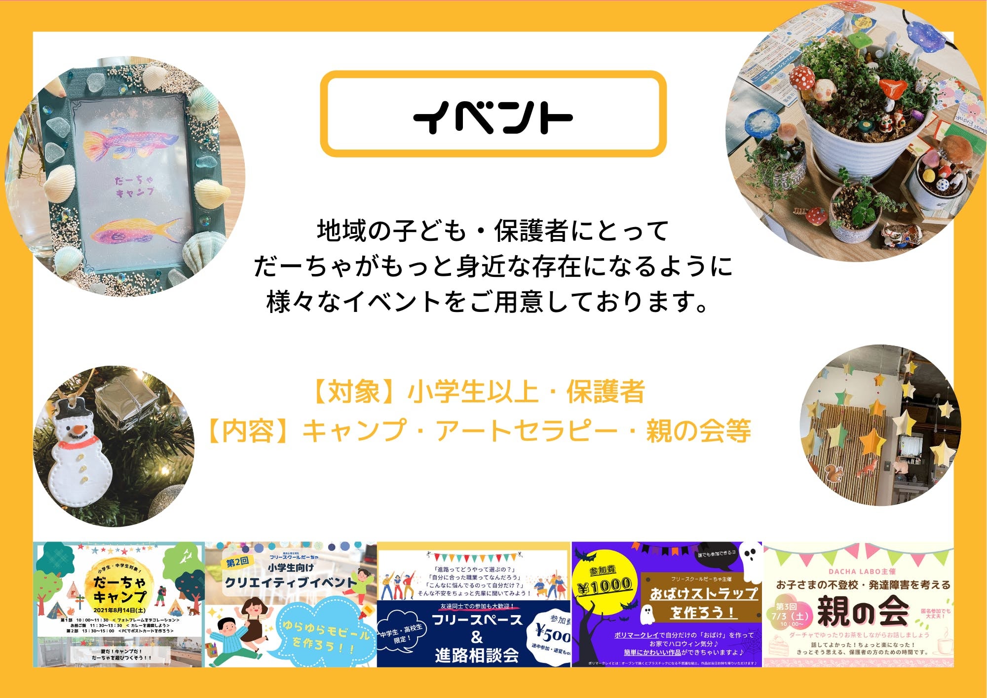 2021年4月に豊島区駒込に「不登校の専門的支援が受けられるフリースクール」として、フリースクールだーちゃを開校しました。学校でも家でもない第三の居場所として、自分の興味関心を広げる体験ができるプログラムを実施しております。