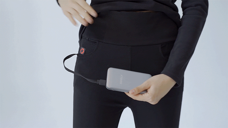 お腹は1秒も冷やしたくないのが本音。そこで、「Warm Pants」はモバイルバッテリーを繫いでわずか1秒で、即発熱を開始!