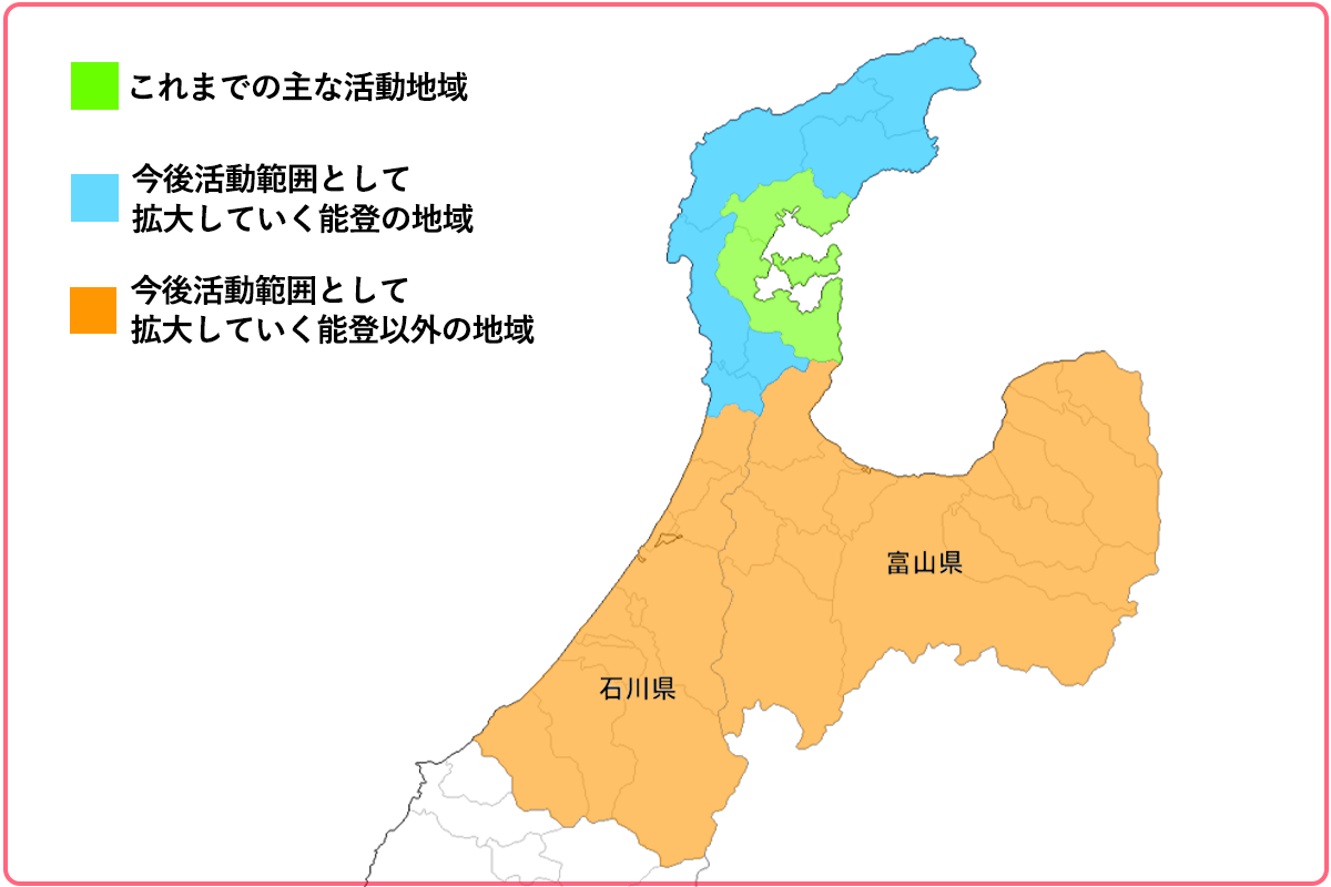 危機感が年々増す中で、私たちは能登の魅力の発信、これからの課題解決、能登の永続的な繁栄のために、10年目の節目の年にNPO法人を設立して街づくりに貢献することを決意致しました。