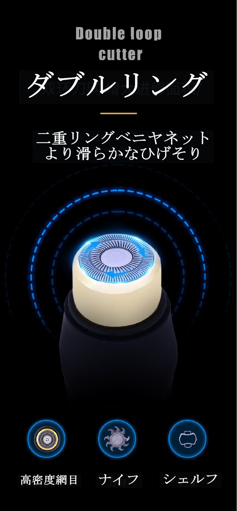 •回転式デザインで往復式よりお肌にやさしく滑らかにシェービングと深剃りができます。