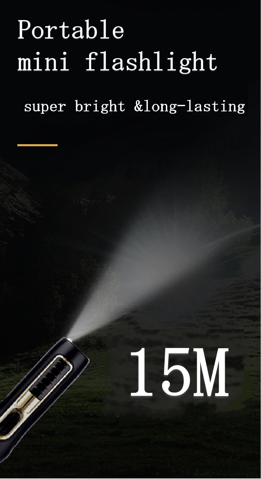 ノーマルビームで最大約15mまで照射可能です。アウトドア、作業用ライトや自転車用ライトとして、夜間の散歩や運動のお供に。
