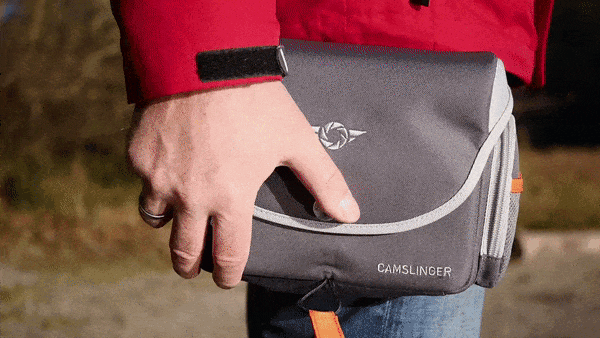 CAMSLINGER Outdoor(カムスリンガーアウトドア)を使用すると、カメラにすばやくアクセスできます。 腰にあるバッグに手を動かし、バッグを開き、カメラをつかんで写真を撮ります。すべて片手で1秒以内です。片手/ 1秒のコンセプトにより、カムスリンガーは素早くカメラにアクセスできるカメラバッグになります!