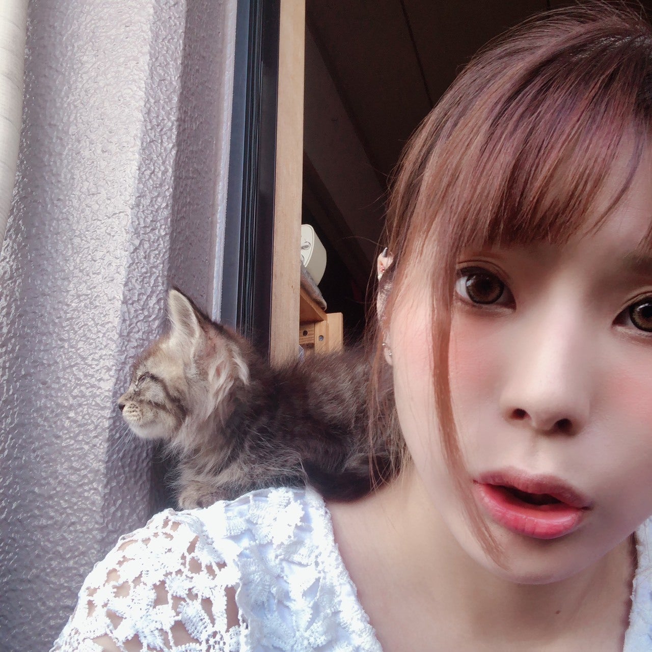 写真・初めてのミルクボランティアした子達の中の十兵衛が肩に乗ってきた時