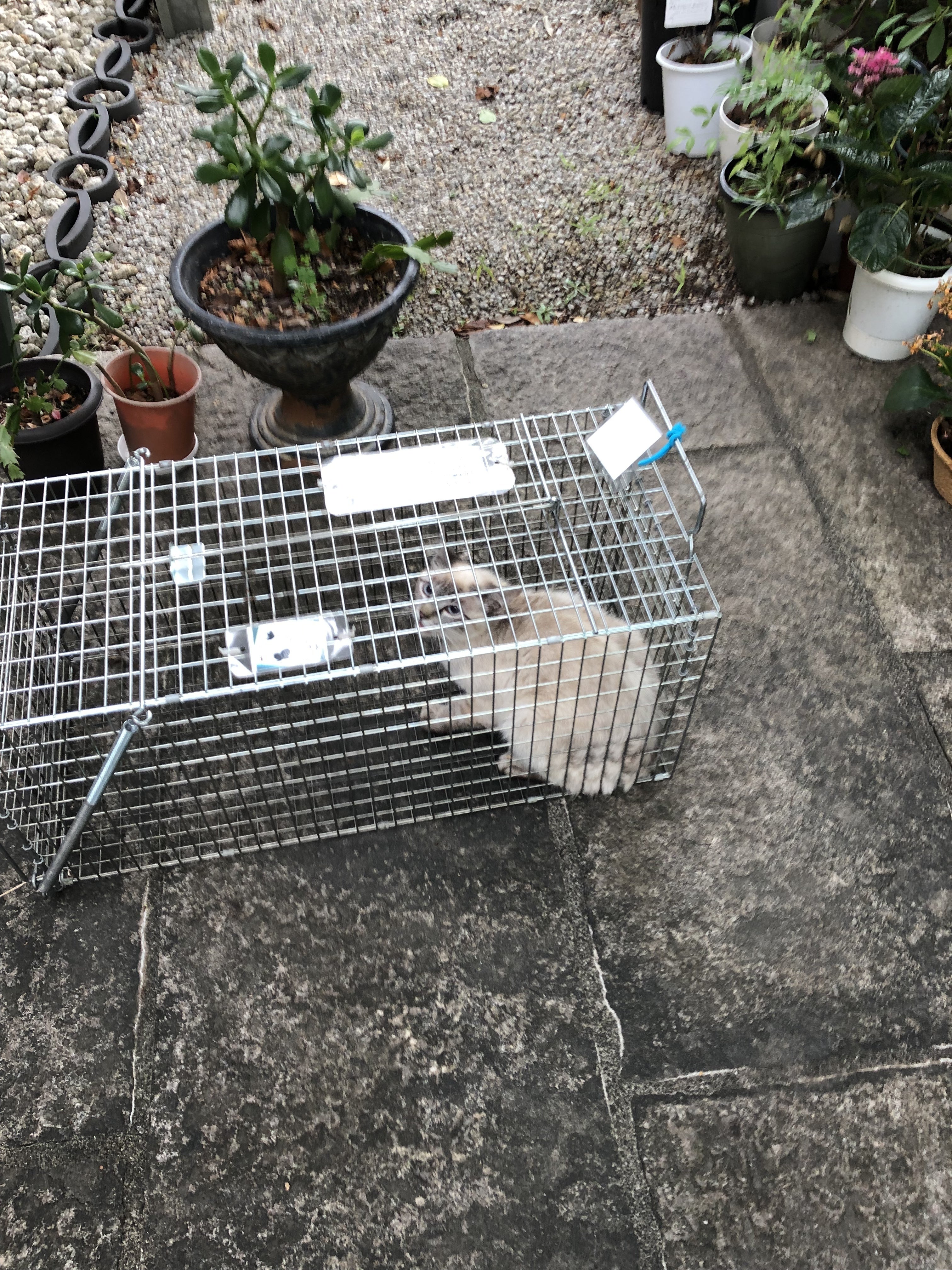 写真・TNRするために捕獲した野良ちゃんです、手術も無事に終えて元の場所へリリースしました