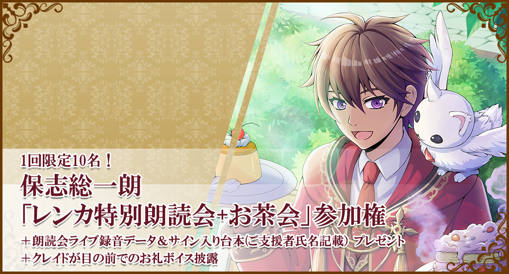 更に「レンカ朗読会」のライブ録音データを、保志総一朗のサイン入り台本(ご支援者様名記載)と共にプレゼントいたします!こちらも今回の支援者様しか手に入らない超レアな録音データです。