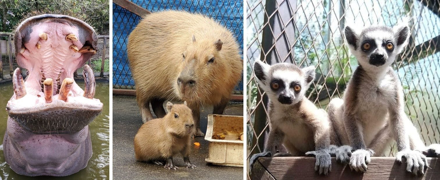 その他にカバやカピバラなど約80種類、約400頭羽 のさまざまな動物たちも暮らしています。当園では動物たちと身近に接して頂ける様にゾウをはじめ草食動物たちにエサをあげる事ができます。