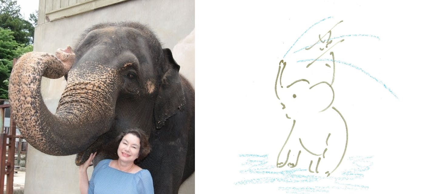 ⓬原画・ゆめ花が描いた「ぞうさんの水遊び」
