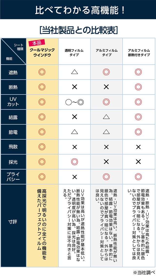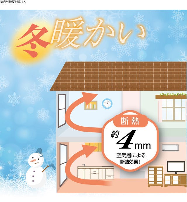 一般的な窓用遮熱フィルムと違い、シートの中間に約4mmの空気層を設けたことで断熱効果&結露防止効果を発揮します。