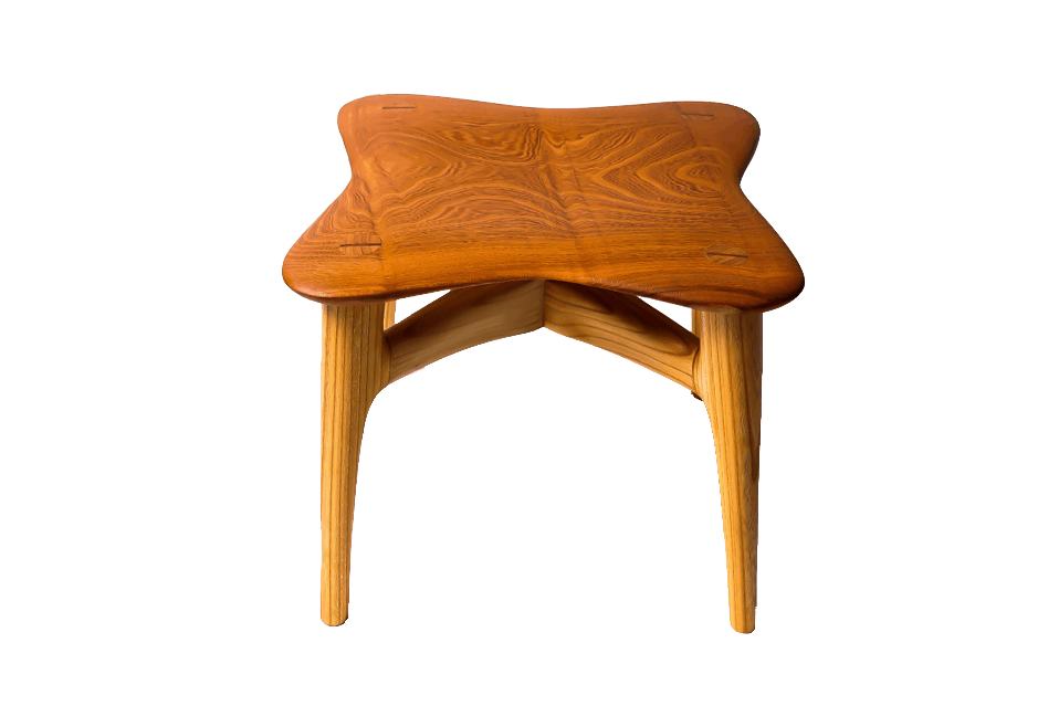 曲線美にこだわった独特のスツールデザイン、手間暇をかけて丁寧に削りと磨きを加えたケヤキの力強く上品な木目が魅力です。