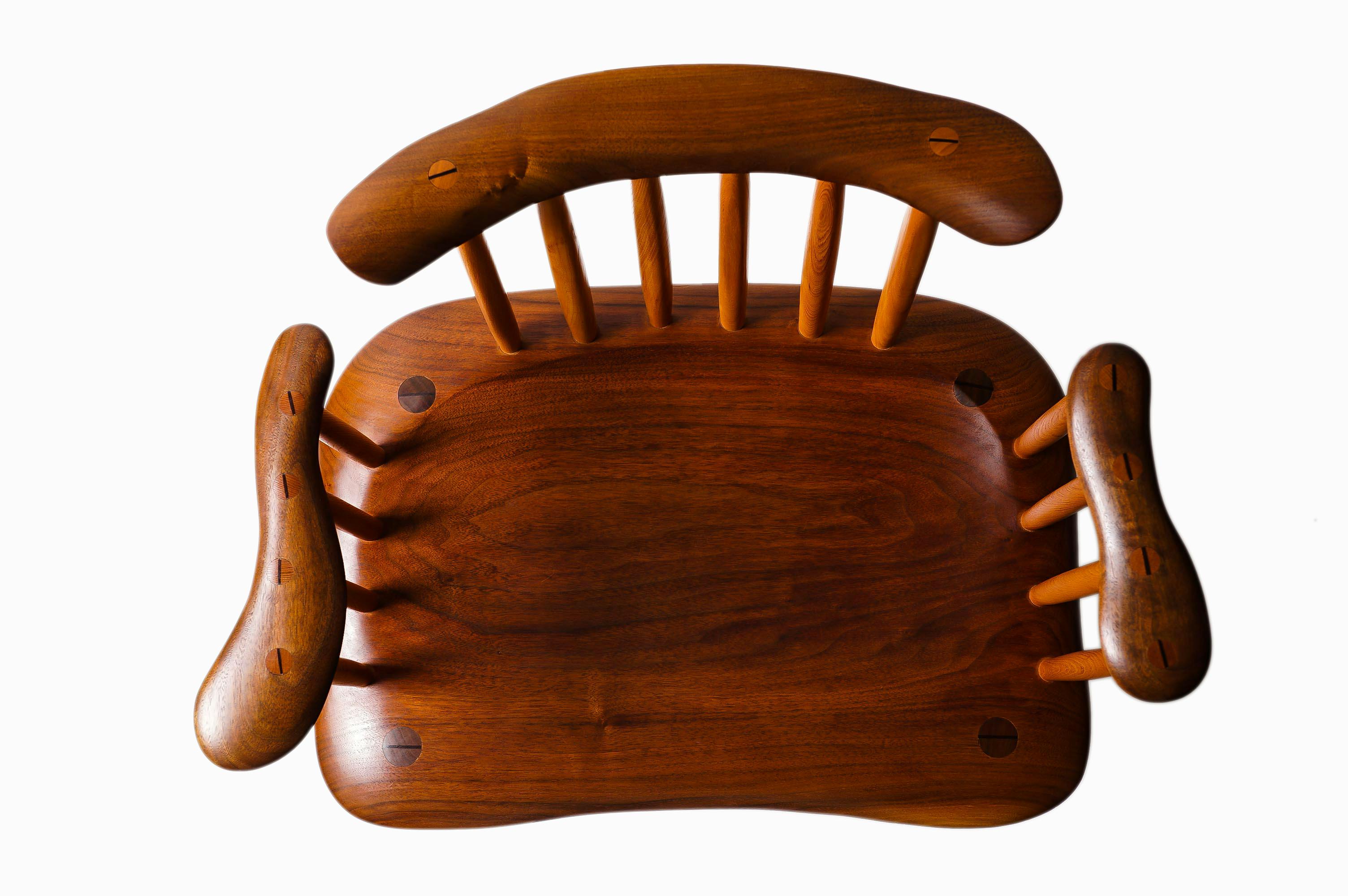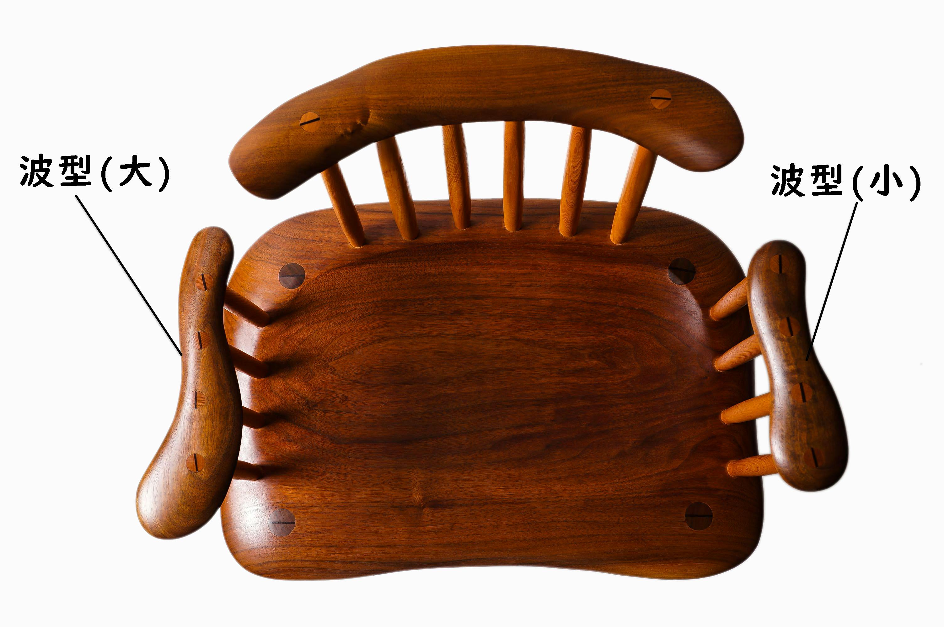 工房KONASOのチェアは全て曲線美にこだわり、カービング加工を施してあります。また釘やネジを一本も使用することなく、留める際はくさび留めするなど見えない部分にもこだわっています。
