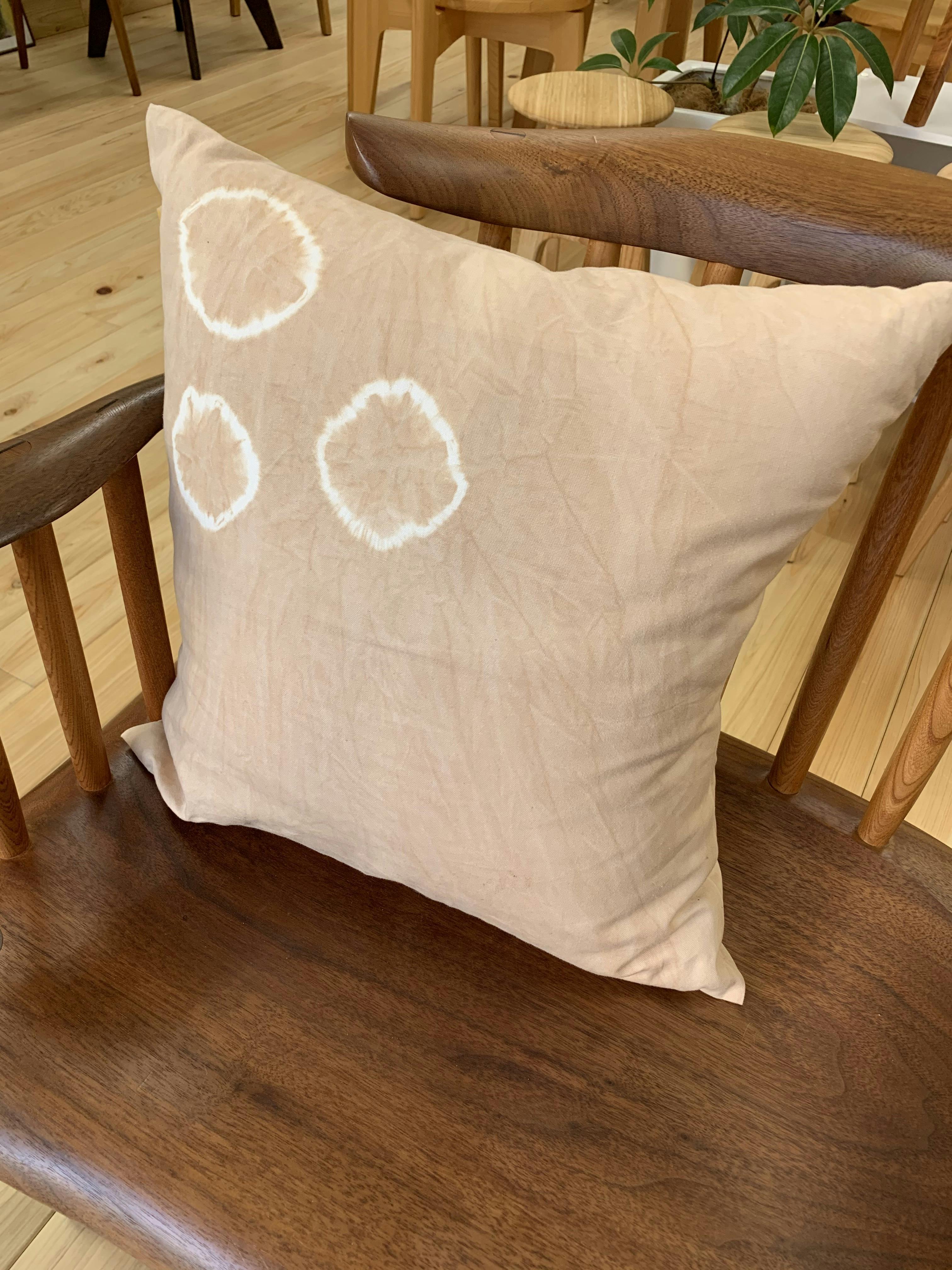 今回CAMPFIREの支援者の方には、ケヤキの草木染めクッションをセットでお届けします。
