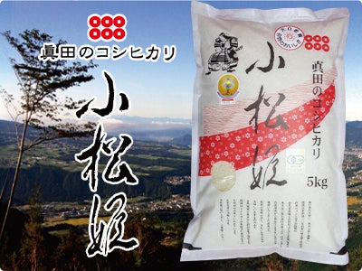初代沼田城主 真田信之公夫人 小松姫の発案により、水不足に悩む領民を救うため、真田家が整備した真田用水から流れてくるきれいな雪どけ水を使って栽培いたしましたお米です。