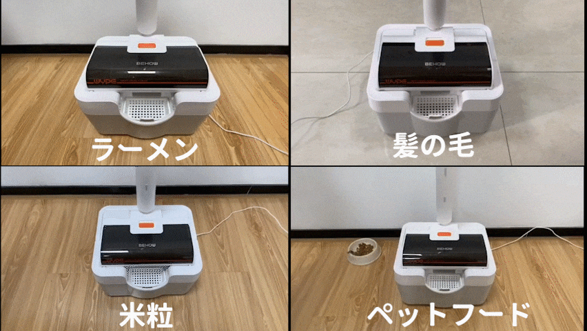 ホコリは勿論、ラーメン、髪の毛、米粒、ペットフード、離乳食、ペットの毛、小さいガラス、植物の葉・・・