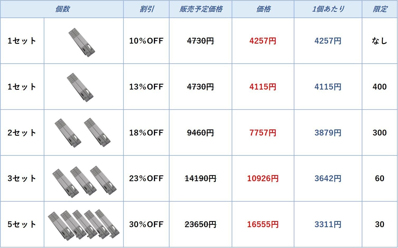 ※本プロジェクトを通して想定を上回る皆様からご支援を頂き、現在進めている環境から量産体制を更に整えることができた場合、正規販売価格が下がる可能性もございます。