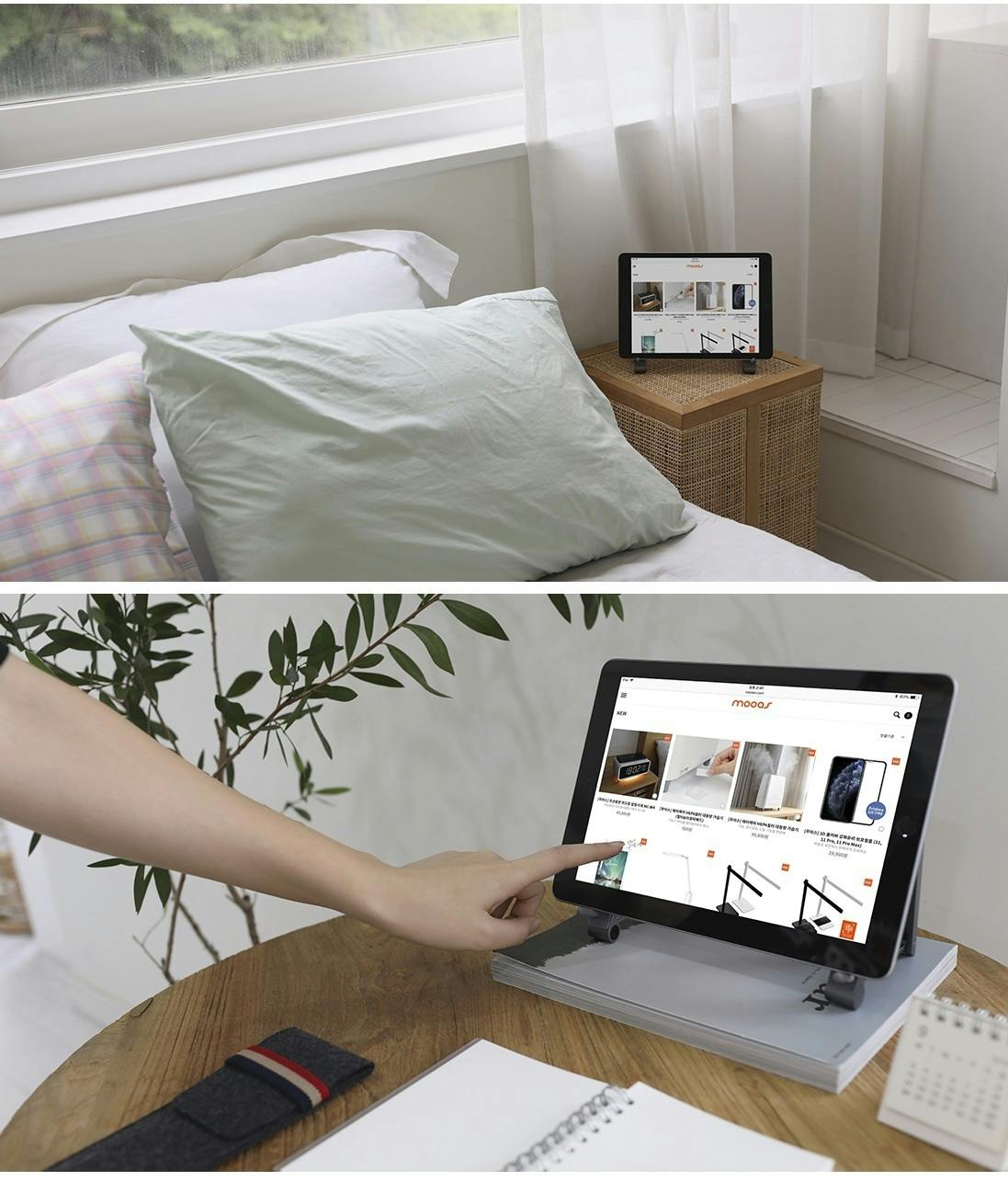 A :スマートフォン(縦置き、横置き)、タブレット、ノートPC、その他本や雑誌などにご使用いただけます。
