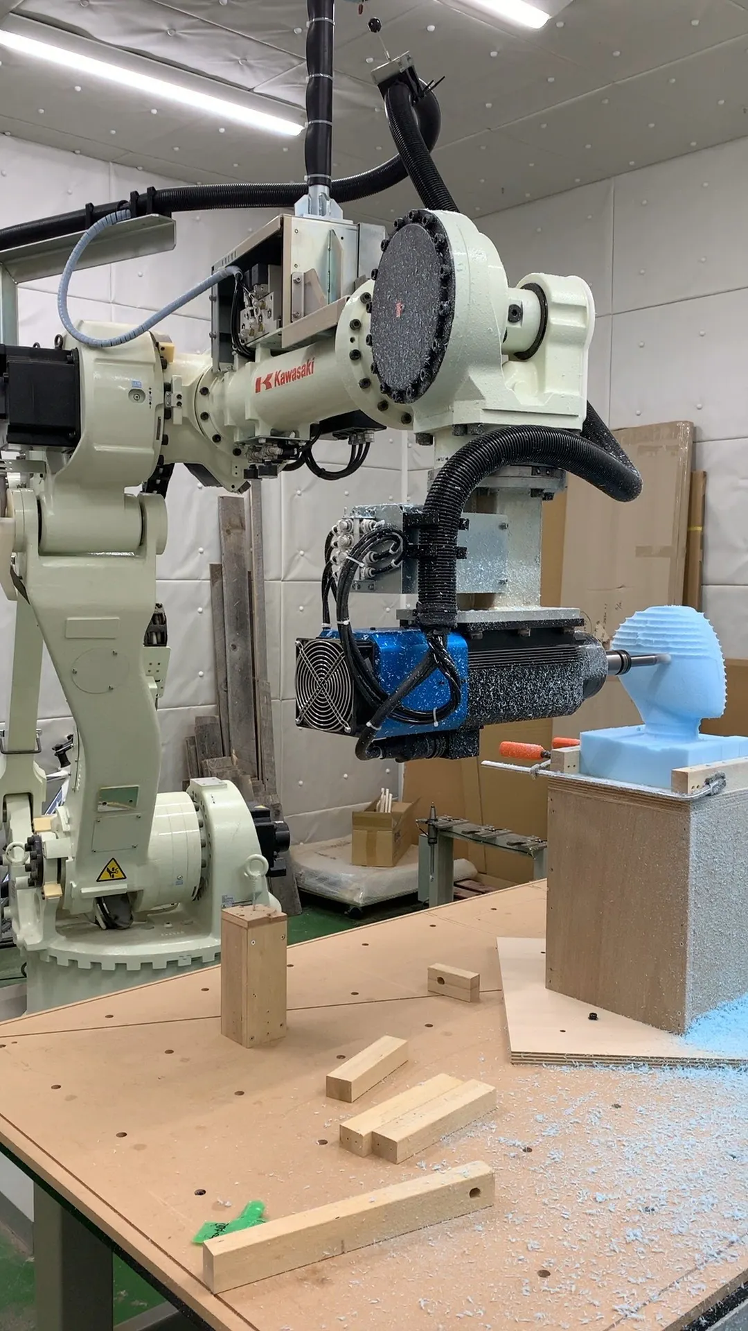 板橋区の町工場では中々見ることのない産業ロボットをいち早く導入しNC加工機ではできないような3D切削加工にも日々取り組んでいます。