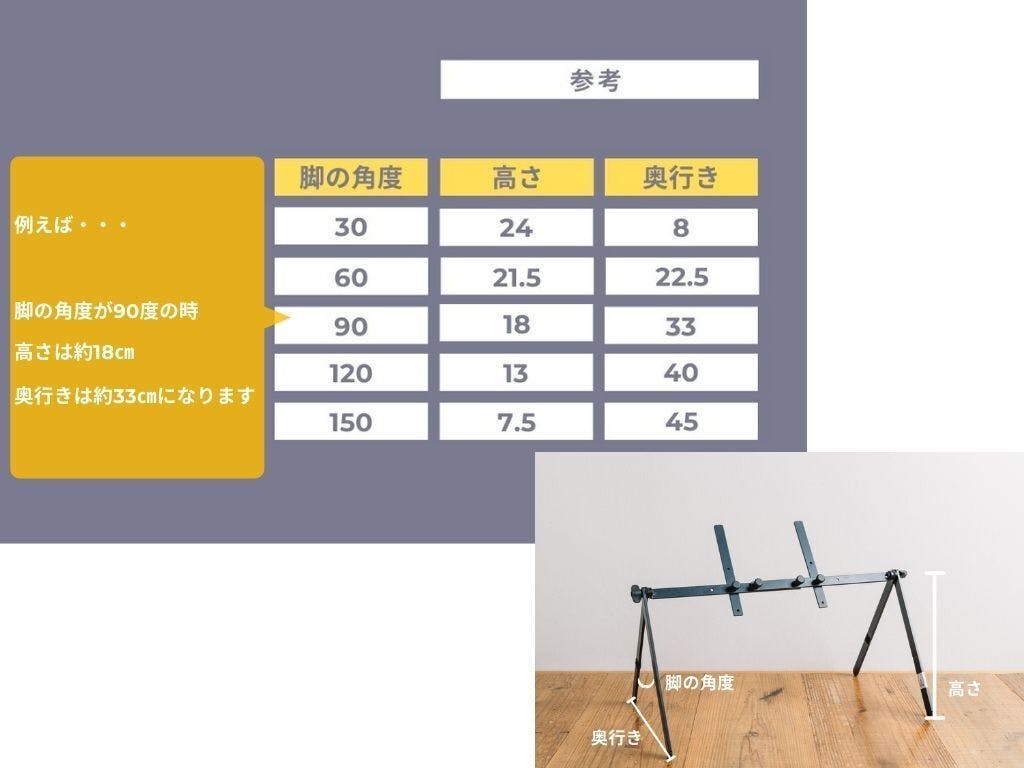 ※ 脚の角度は30・60・90・120・150度以外でも任意で変えられます