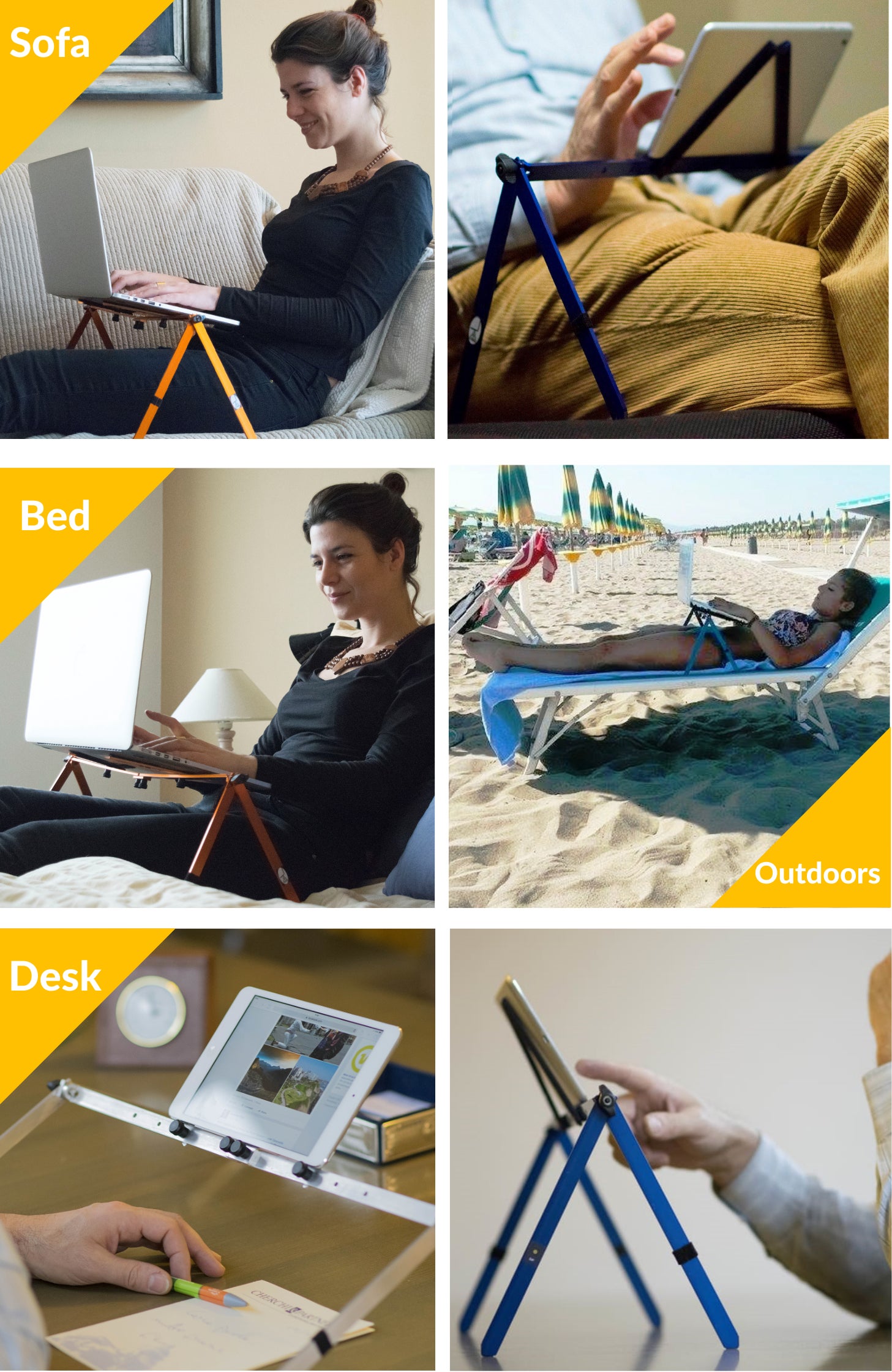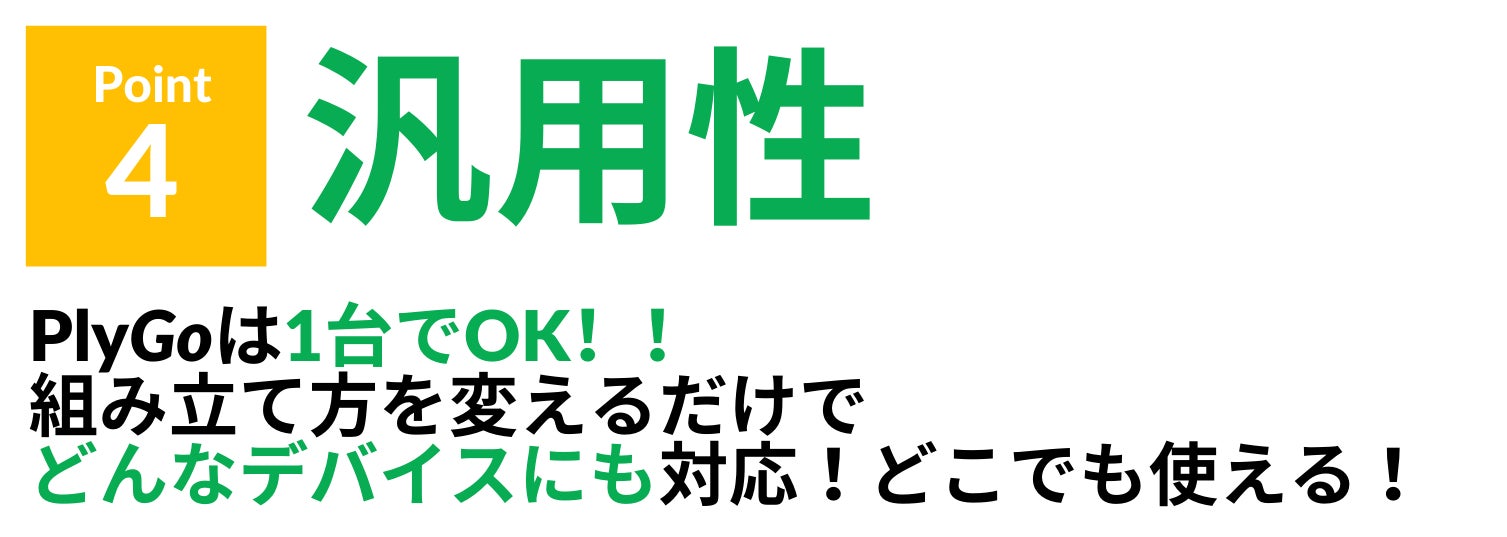 PlyGoは1台でOK!組み立て方を変えるだけで、横幅約5cmのスマートフォンから横幅約50cmまでのノートPCまであらゆるデバイスに対応します。