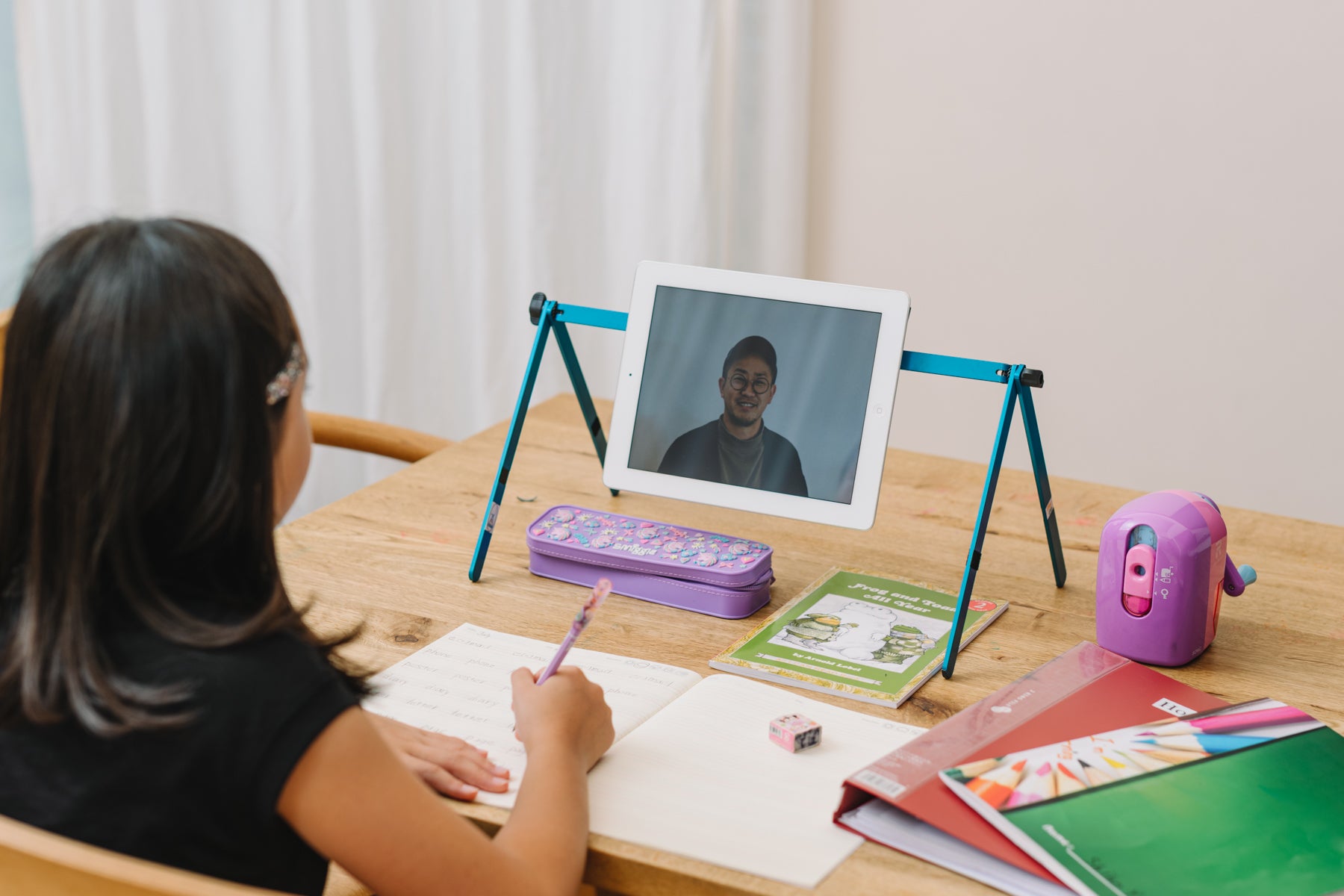 PlyGoがあれば、正しい姿勢をキープでき、集中力もUP!タブレットとの距離を保つことも可能です!
