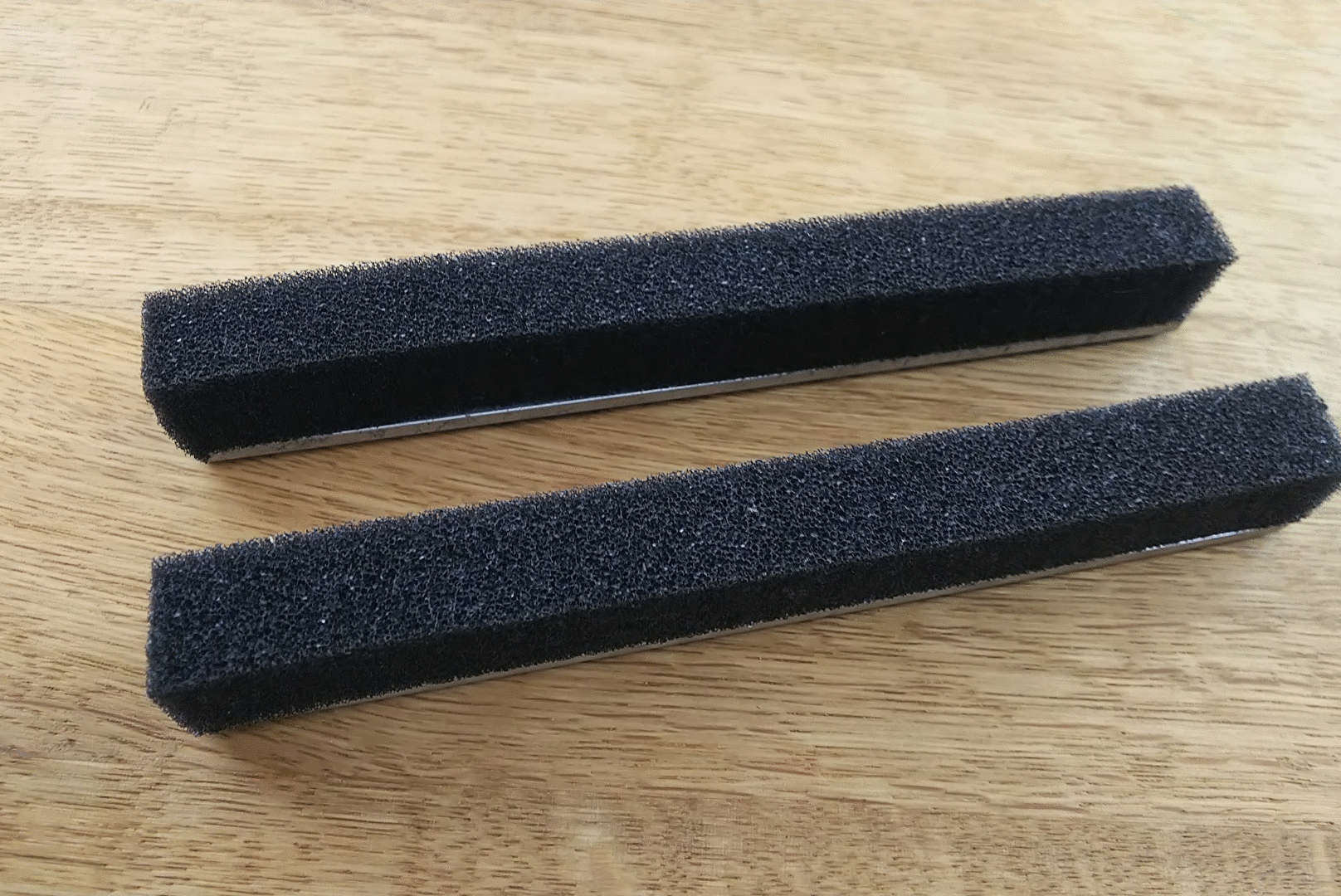 付属のマジックテープは8枚入り。上の画像は左右に各2枚、縦に貼付しています。その他にも、左右に各3枚、横に貼付するなど、ノートPCの裏の形状に合わせて貼り方を変えられます。