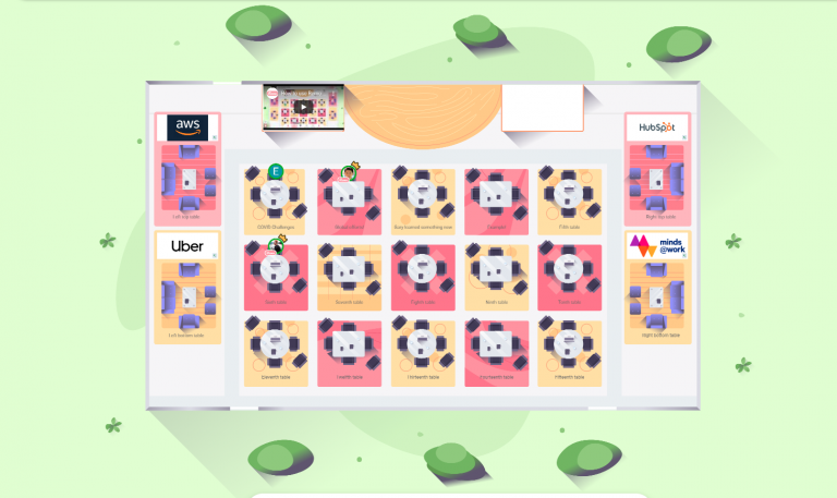 オンライン会議システム〈REMO〉の会場画面。中の小さな四角が「テーブル」イメージしています。