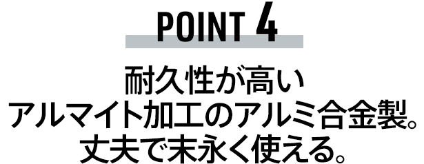 【OMO-TAI】は、本体部分に丈夫で耐久性の高いアルミ合金を使用。